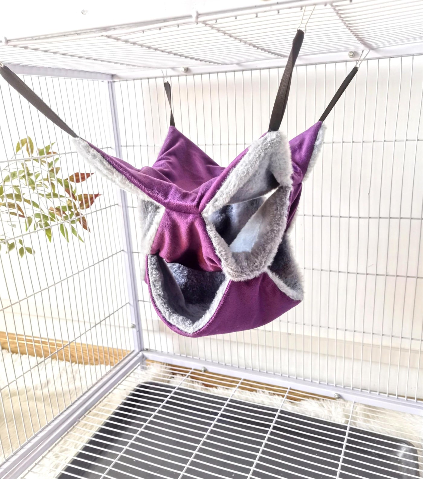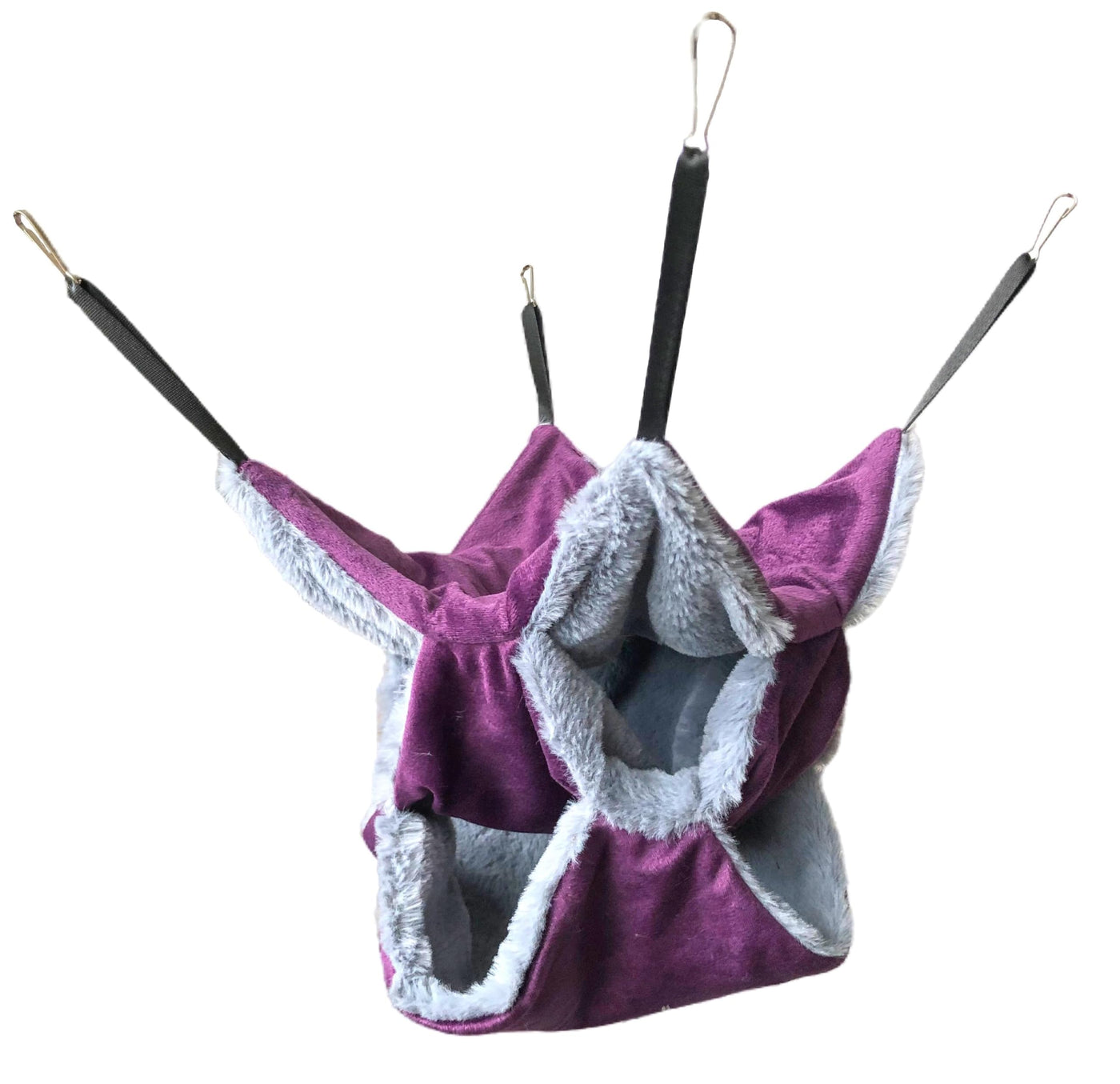 Vedem Small Animals Warm Plush Triple Bunkbed Cage Hanging Hammock Bed Hideout For Sugar Glider Ferret Squirrel (Purple/Grey)