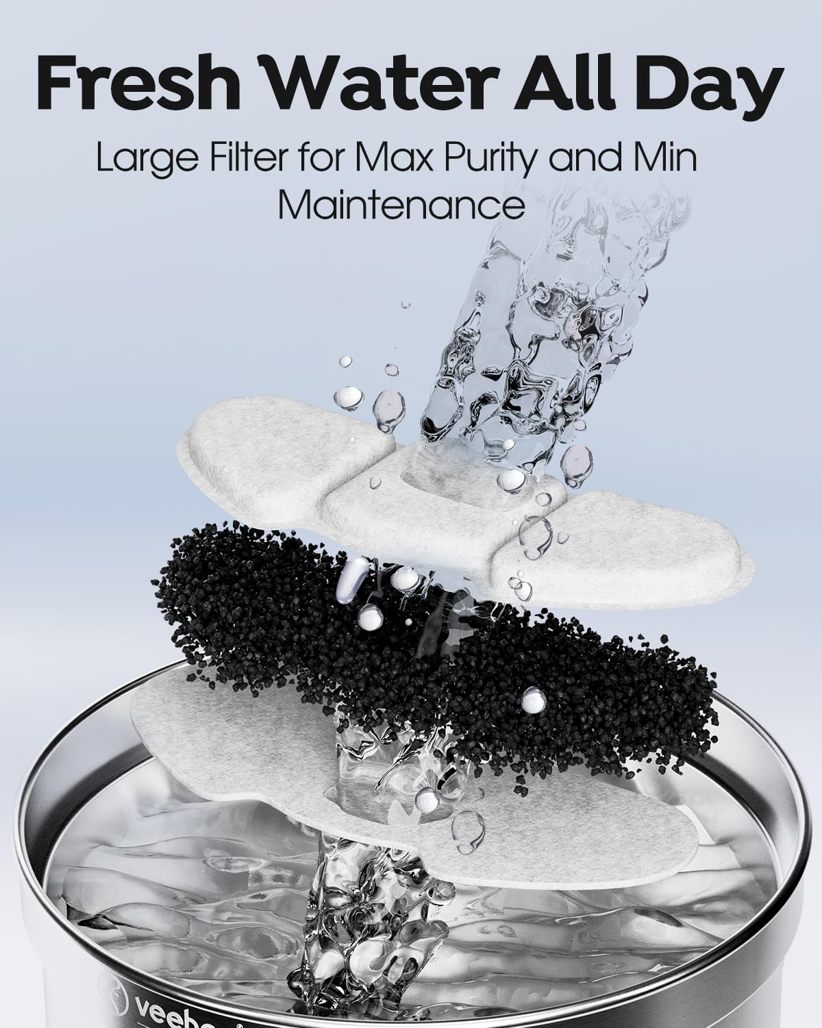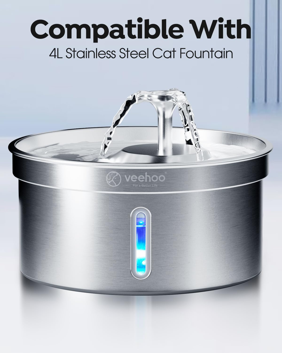 Veehoo 12 Pack Replacement Filters & 12 Pack Pre-Filter Sponges Set For 135Oz 304 Stainless Steel Cat Water Fountain, 6 Months S