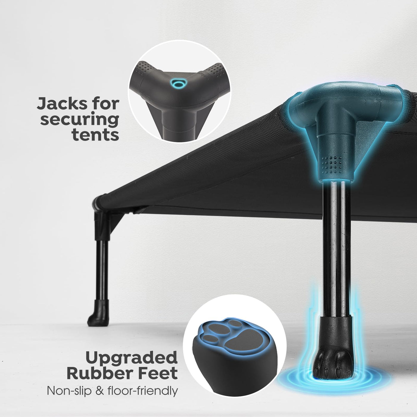 Why Veehoo Classic Raised Dog Bed? The cot-style pet bed's elevated design lifts a pet more than 7 inches up off the ground, which allows air to flow freely from all directions, including underneath the pet. Durable mesh fabric offers added breathability to help keep the pet cool, providing welcome relief, especially on hot summer days. Easy to Assemble & Disassemble with no Extra tools needed! Convenient to carry. Great for camping, hiking, picnics or anywhere indoors or outdoors Made of textilene fabric and a breathable mesh center. Slip-resistant rubber feet helps protect the floor. VEEHOO Pet Cot is durable and can hold up to 150 pounds pet.