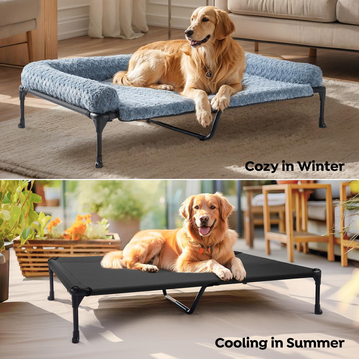 Veehoo Cooling Elevated Dog Bed Add Removable Deluxe Rose Plush Bolster Cushion Mat, 53'' X 33'' Washable Dog Couch Bed, Raised