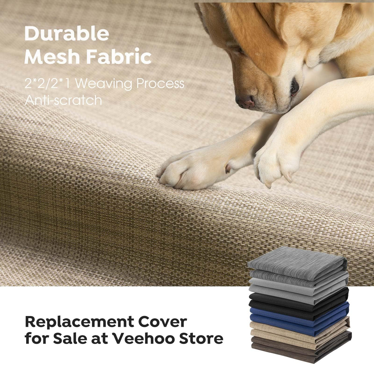 Why Veehoo Classic Raised Dog Bed? The cot-style pet bed's elevated design lifts a pet more than 7 inches up off the ground, which allows air to flow freely from all directions, including underneath the pet. Durable mesh fabric offers added breathability to help keep the pet cool, providing welcome relief, especially on hot summer days. Easy to Assemble & Disassemble with no Extra tools needed! Convenient to carry. Great for camping, hiking, picnics or anywhere indoors or outdoors Made of textilene fabric and a breathable mesh center. Slip-resistant rubber feet helps protect the floor. VEEHOO Pet Cot is durable and can hold up to 150 pounds pet.