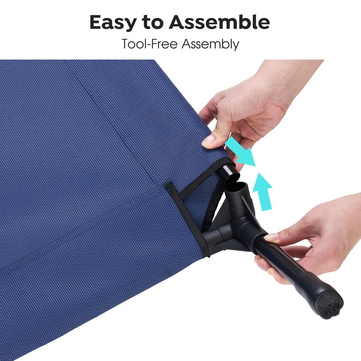 Why Veehoo Classic Raised Dog Bed? The cot-style pet bed's elevated design lifts a pet more than 7 inches up off the ground, which allows air to flow freely from all directions, including underneath the pet. Durable mesh fabric offers added breathability to help keep the pet cool, providing welcome relief, especially on hot summer days. Easy to Assemble & Disassemble with no Extra tools needed! Convenient to carry. Great for camping, hiking, picnics or anywhere indoors or outdoors Made of textilene fabric and a breathable mesh center. Slip-resistant rubber feet helps protect the floor. VEEHOO Pet Cot is durable and can hold up to 150 pounds pet.