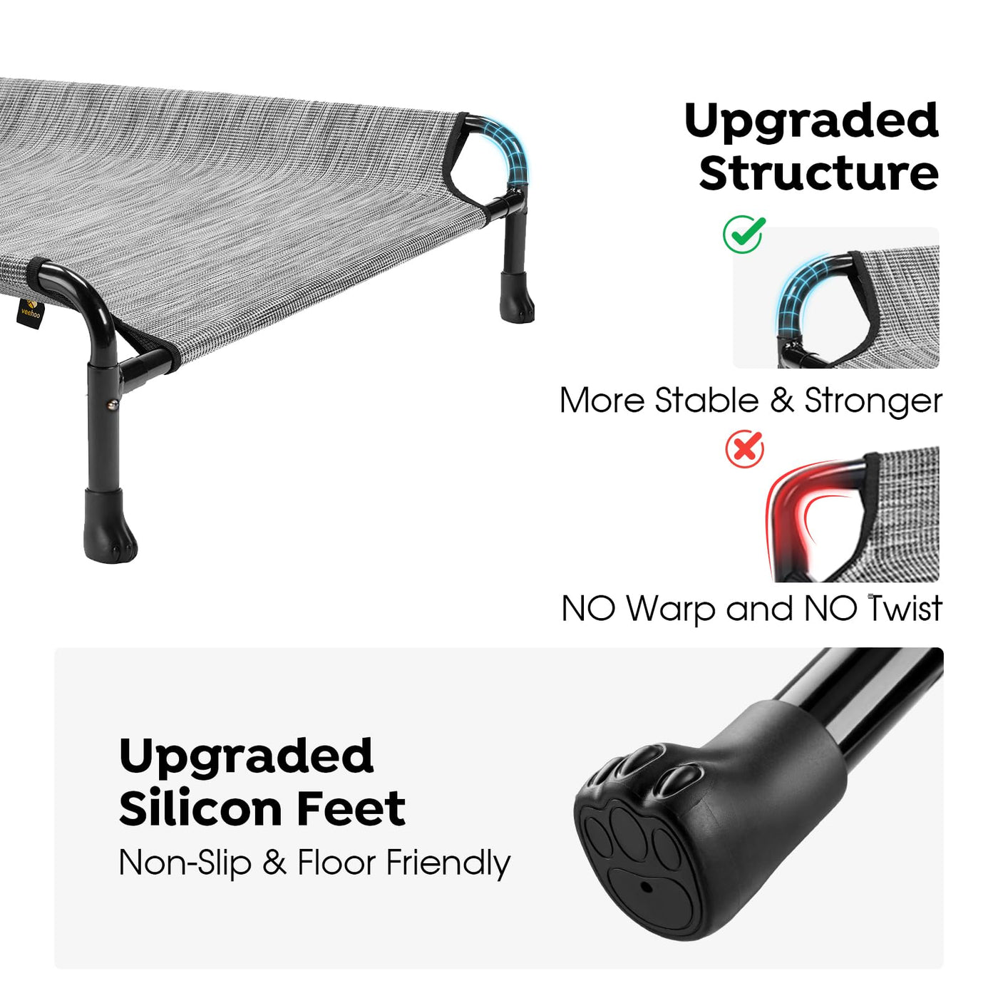 Veehoo Cooling Elevated Dog Bed, Raised Dog Beds For Large Dogs, Outdoor Dog Bed With Guardrail, Upgraded Non-Slip Feet, Breatha