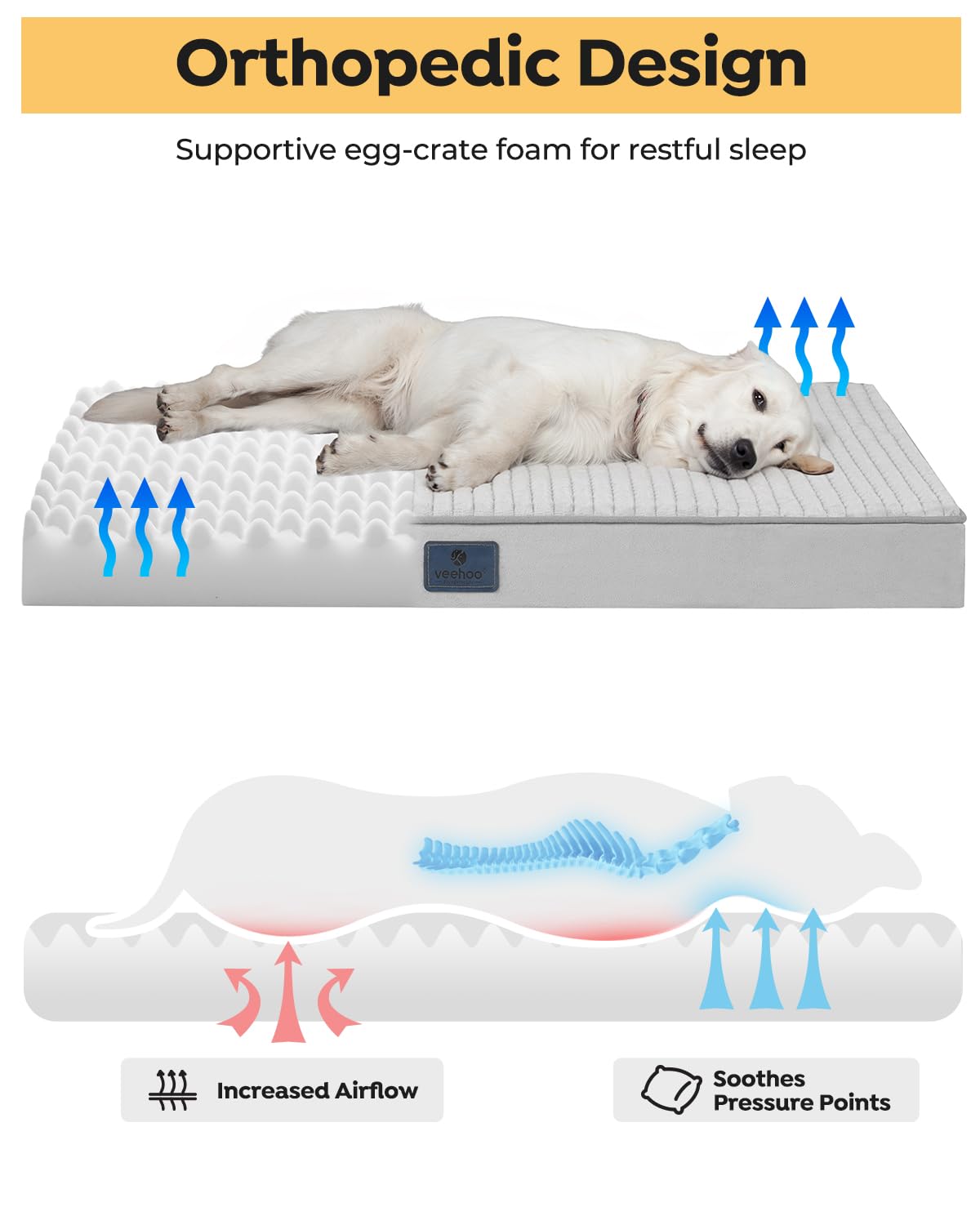 Veehoo Dog Beds Large Sized Dog-4'' Plush Flannel Large Dog Bed With Removable Washable Cover & Waterproof Inner Liner, Xl Ortho