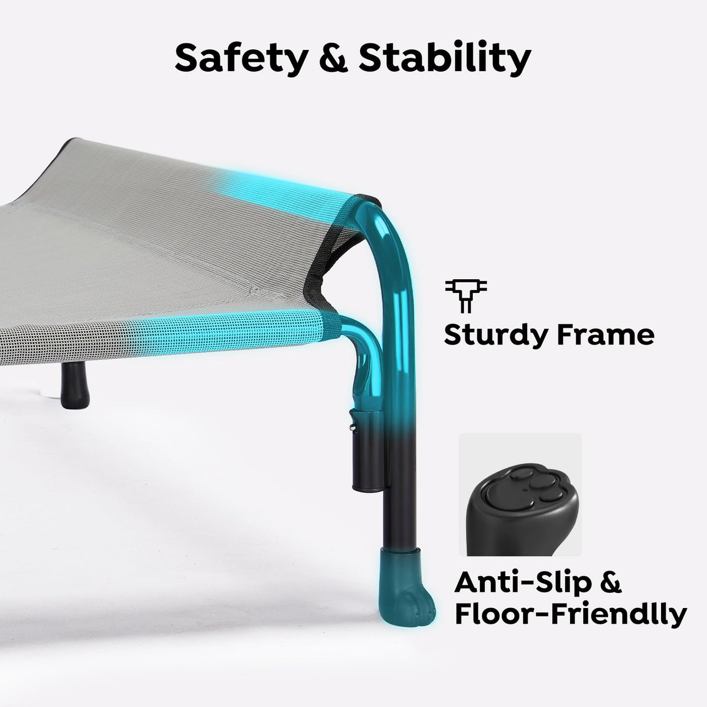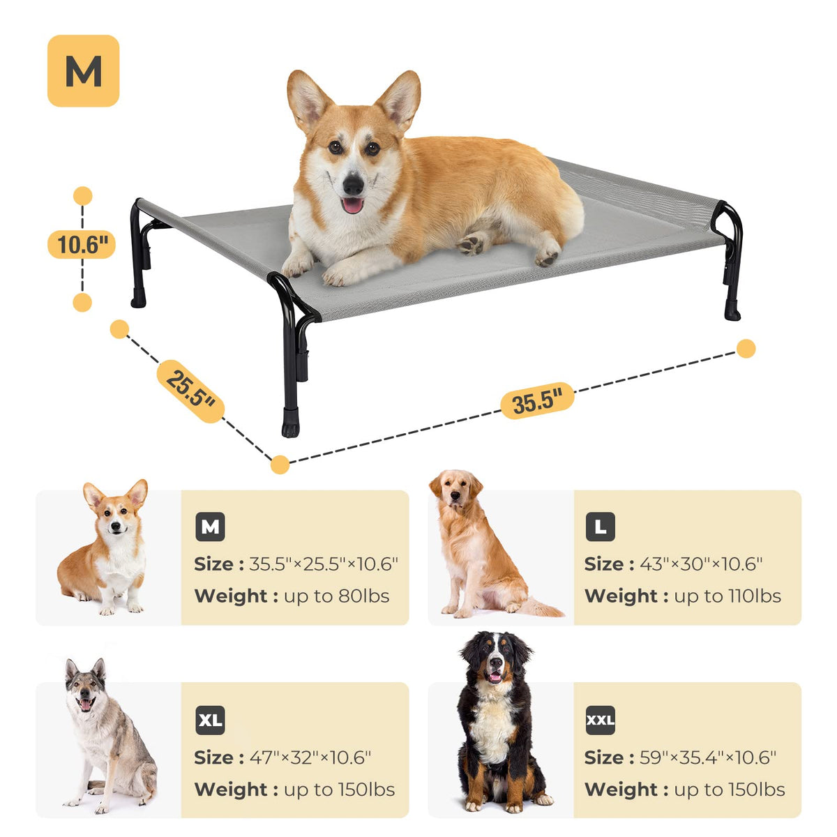Veehoo Elevated Dog Bed, Outdoor Raised Dog Cots Bed For Medium Dogs, Cooling Camping Elevated Pet Bed With Slope Headrest For Indoor And Outdoor, Washable Breathable, Medium, Grey, Cwc2204