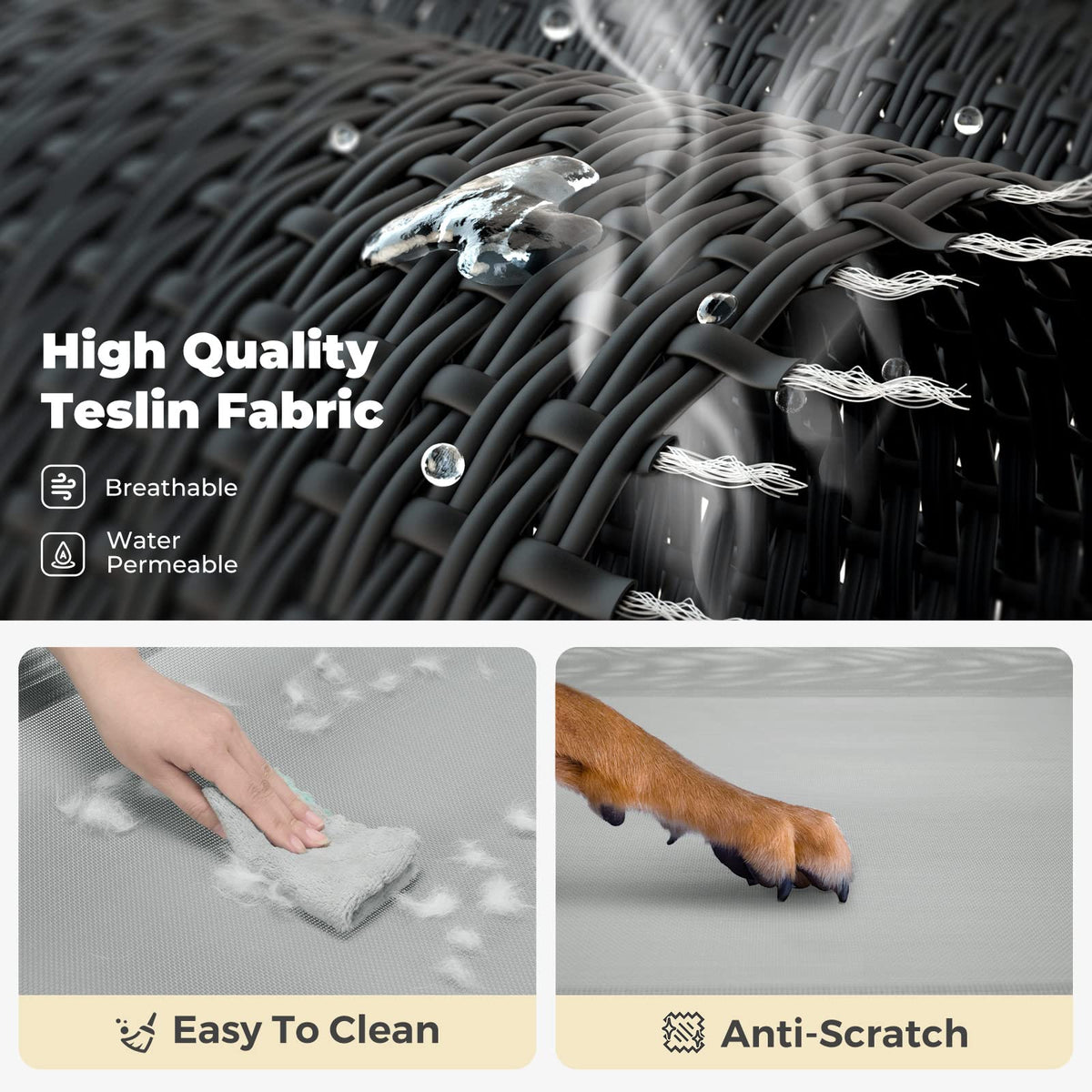 Textilene Mesh Fabric: 1, Allows air to flow, keep cool ever. 2, Allow urine to go through, water will not pool up. 3, Heat-resistance, sturdy and machine washable.