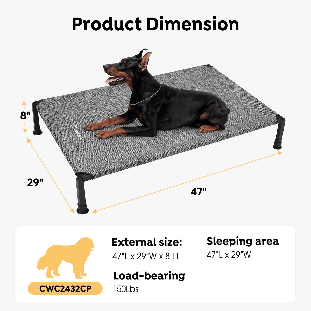 Veehoo Heavy Duty Elevated Dog Bed - Raised Dog Cot With Washable & Breathable Teslin Mesh, Non-Slip Silicon Feet, Cooling, Indo