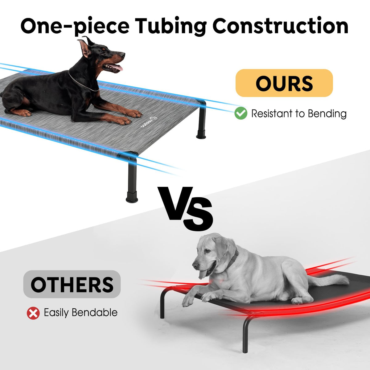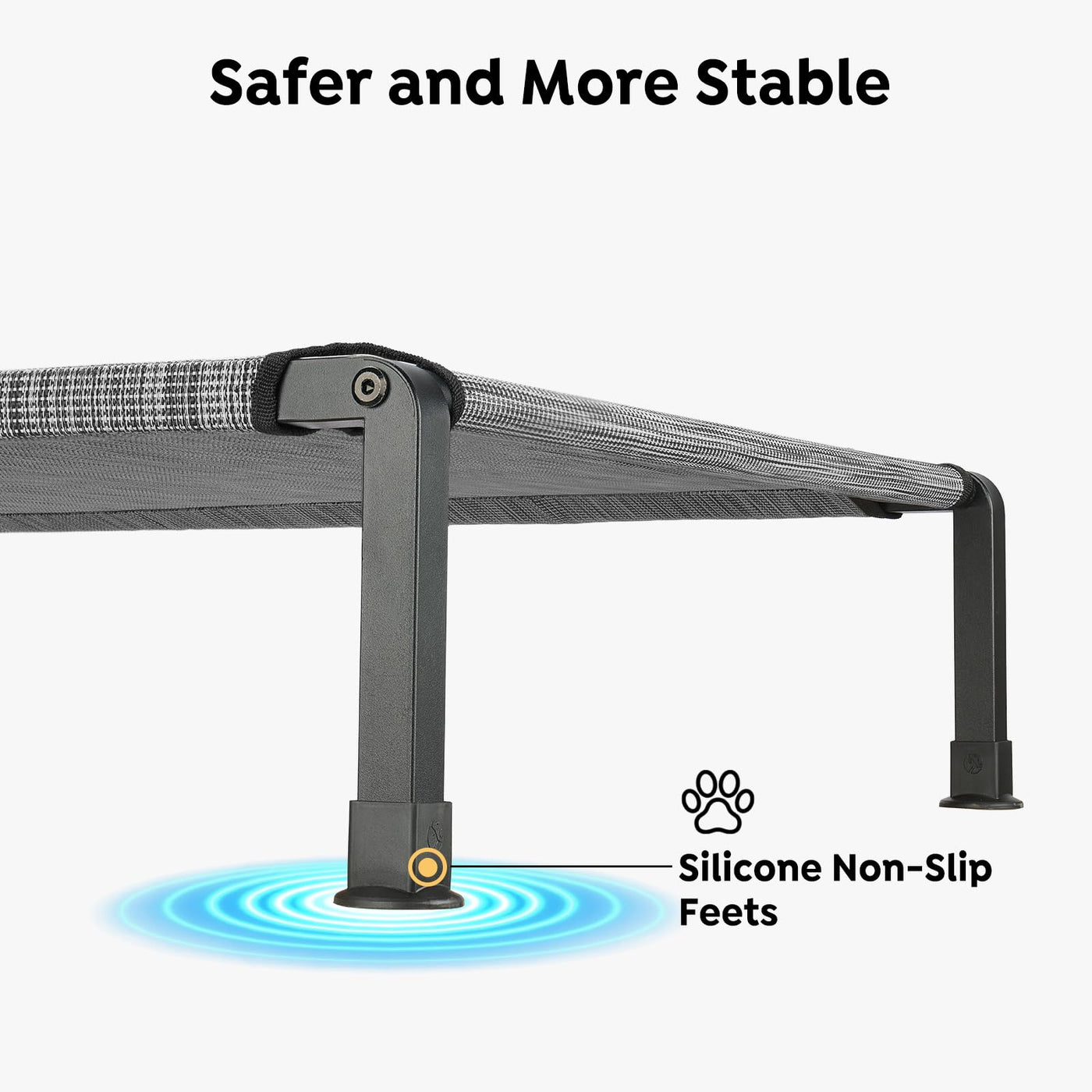 Veehoo Elevated Pet Bed Is Designed For Ultimate Comfort And Durability. This Bed Features A Sturdy Frame And Reinforced Legs, Ensuring Stability And Support For Your Pet. The Breathable Mesh Surface Promotes Airflow, Keeping Your Pet Cool And Comfortable. Perfect For Indoor Or Outdoor Use, Its Easy To Clean And Maintain, Making It An Ideal Choice For Any Pet Owner. Veehoo Advantages: One-Piece Tubing Construction Resists Bending, Ensuring Durability. Heavy-Duty Dog Bed Frame Is Thicker Than Standard Options. Upgraded Silicone Feet Prevent Sliding And Protect Floors From Scratches When Your Dog Jumps On.
