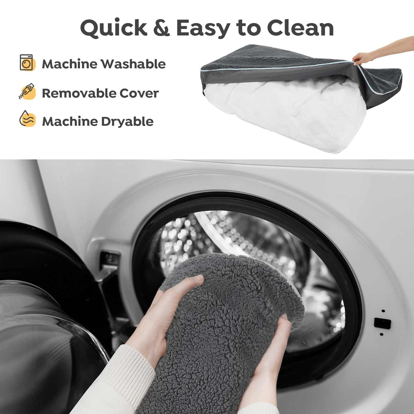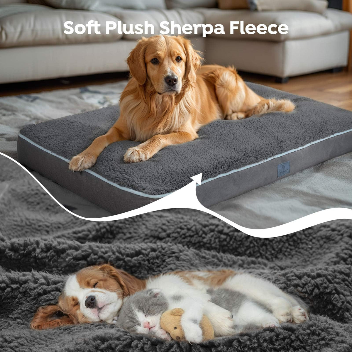 Veehoo Washable Dog Beds Large Sized, Deluxe Plush Sherpa Xxl Dog Bed For Crate With Removable Cover & Waterproof Inner Liner, E