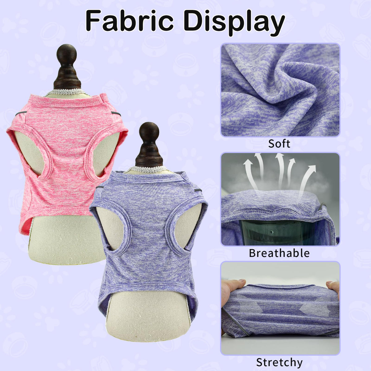 Vehomy 2Pcs Dog Cooling Shirts Dog Sleeveless Puppy Cat Kitten Tank Top Pet Quick Dry Vest Shirt For Small Medium Dogs-Please Measure Your Pets Correctly And Check The Size Chart Before Shopping To Avoid Return Due To Size Issue.-Please Leave Ample Room To Slip Two Fingers Between The Measure Tape And Your Dog'S Body When Measure Your Pet Neck Girth And Chest Girth. If The Measurements Are Between Two Sizes, Please Choose The Larger Size.Size Informationxs: Body Length: 9.4' / 24Cm, Chest Girth: 12.6' / 32Cm, Neck Girth: 7.9' / 20Cm, Recommended For Cats Or Dogs Between 3-5.5Lb / 1.5-2.5Kg.S: Body Length: 11.4' / 29Cm, Chest Girth: 15.0' / 38Cm, Neck Girth: 9.8' / 25Cm, Recommended For Dogs Between 5.5-11Lb/ 2.5-5Kg.M: Body Length: 13.4' / 34Cm, Chest Girth: 17.3' / 44Cm, Neck Girth: 11.0' / 28Cm, Recommended For Dogs Between 11Lb-17Lb/ 5-8Kgl: Body Length: 15.7' / 40Cm, Chest Girth: 19.7'/ 50Cm, Neck Girth: 11.8' / 30Cm, Recommended For Dogs Between 15.5-22Lb/ 7-10Kgxl: Body Length: 17.7' / 45Cm, Chest Girth: 22'/ 56Cm, Neck Girth: 13.8' / 35Cm, Recommended For Dogs Between 22-33Lb/ 10-15Kgxxl: Body Length: 20.1' / 51Cm, Chest Girth: 25.6'/ 65Cm, Neck Girth: 16.1' / 41Cm, Recommended For Dogs Between 33-45Lb/ 15-20Kg;Product Features-Soft Material: The Puppy Tank Tops Are Made Of Soft Cotton, Comfy And Breathable To Wear;-Reflective Stripes: On The Back Of The Puppy Shirts, There Are 2 Reflective Stripes, It Ensure Your Pets' Safety When Walking In Dark.2Pcs In A Package: You Will Get 2X Dog Shirts A Pink And A Purple, The Classical Colors Suitable For Both Boy And Girl Dogs And Catsoccasions: Outdoor Or Indoor Activities, Especially In Ac Room, Protect Your Puppies From Getting A Cold.