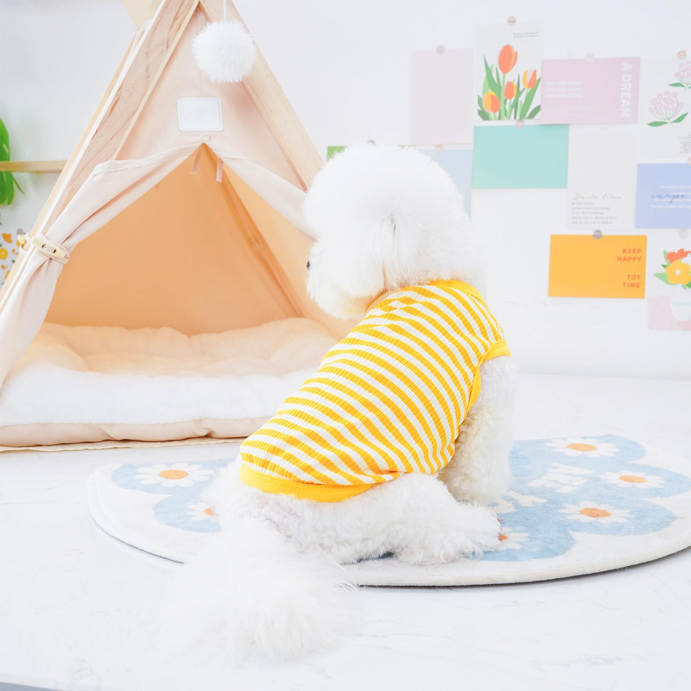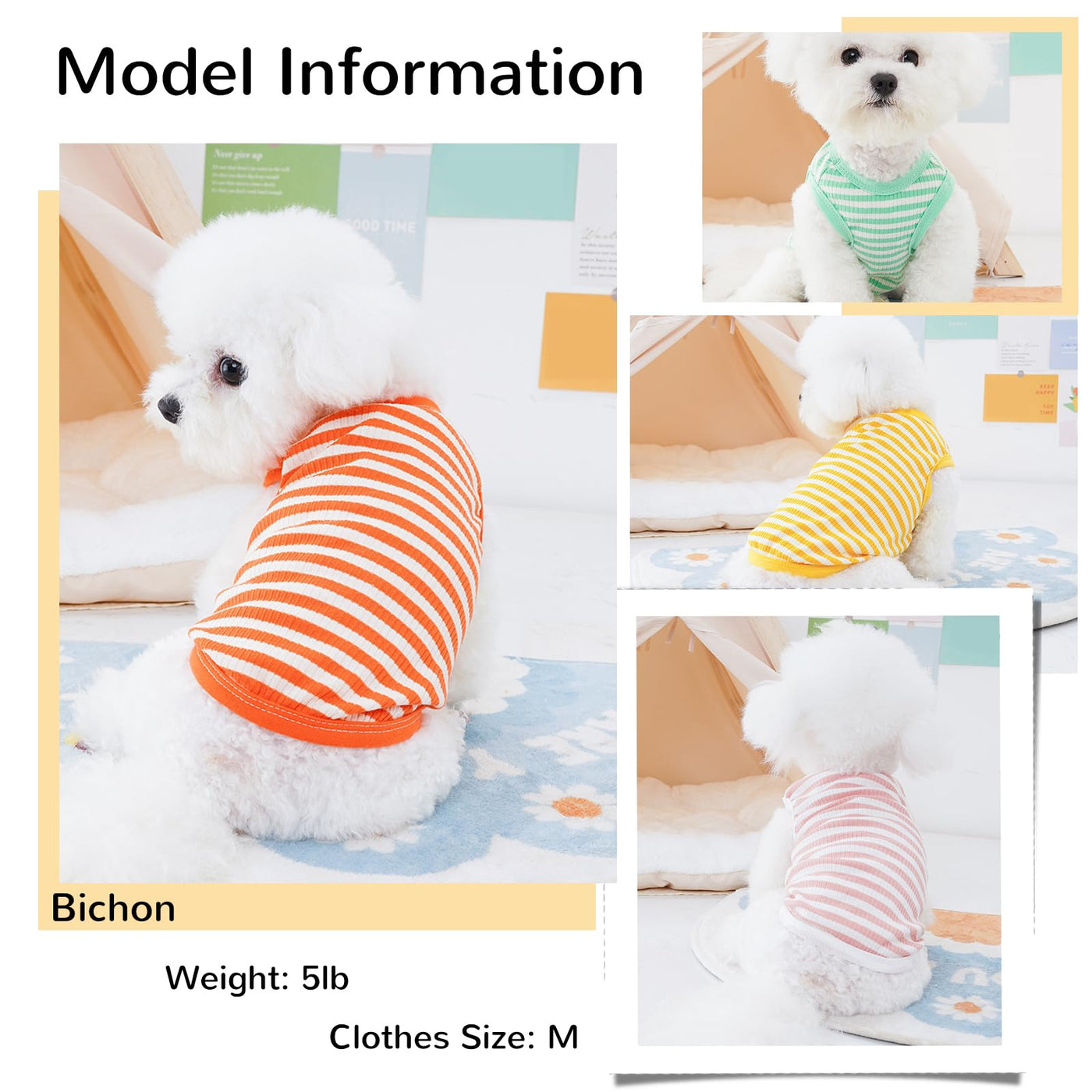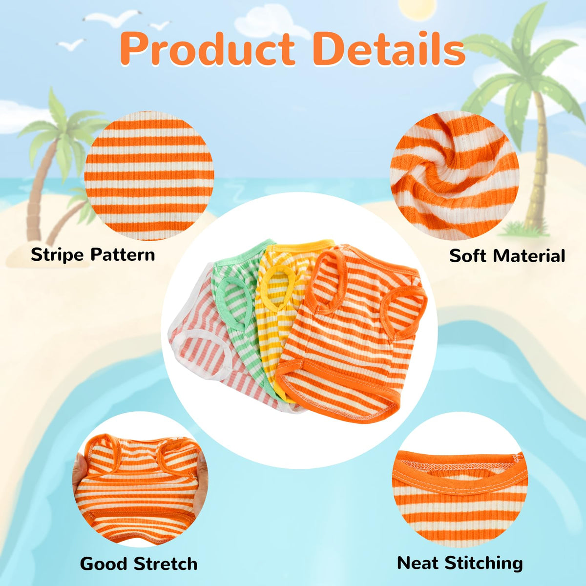 Vehomy 4Pack Dog Striped Shirt Dog Sleeveless Clothes Outfit Puppy Cat Kitten Tank Top Pet Cotton Vest Shirt For Small Medium Dogs-Please Measure Your Pets Correctly And Check The Size Chart Before Shopping To Avoid Your Return Due To Size Issue.-Please Leave Ample Room To Slip Two Fingers Between The Measure Tape And Your Dog'S Body When Measure Your Pet Neck Girth And Chest Girth. If The Measurements Are Between Two Sizes, Please Choose The Larger Size.Size Informations: Body Length: 7.9 / 20Cm, Chest Girth: 12.6 / 32Cm, Neck Girth: 9.1 / 23Cm, Recommended For Cats Or Dogs Between 2.5Lb-4Lb.M: Body Length: 9.8 / 25Cm, Chest Girth: 14.6 / 37Cm, Neck Girth: 10.2 / 26Cm, Recommended For Dogs Between 4Lb-6.5Lb.L: Body Length: 11.8 / 30Cm, Chest Girth: 16.5 / 42Cm, Neck Girth: 11.4 / 29Cm, Recommended For Dogs Between 6.5Lb-9.0Lbxl: Body Length: 13.8 / 35Cm, Chest Girth: 18.5/ 47Cm, Neck Girth: 12.6 / 32Cm, Recommended For Dogs Between 9.0Lb-13Lbxxl: Body Length: 15.7 / 40Cm, Chest Girth: 20.5/ 52Cm, Neck Girth: 13.8 / 35Cm, Recommended For Dogs Between 13Lb-17.5Lb;Product Features-Soft Material: The Puppy Tank Tops Are Made Of Soft Cotton, Comfy And Breathable To Wear;-Bright Colors: There Are 4 Colors, Blue, Red, Orange And Yellow, The Classical Stripe Pattern, Suitable For Both Boy And Girl Dogs And Catsoccasions: Outdoor Or Indoor Activities, Especially In Ac Room, Protect Your Puppies From Getting A Cold.Package Included: 4X Dog Stripe Pattern Shirts.