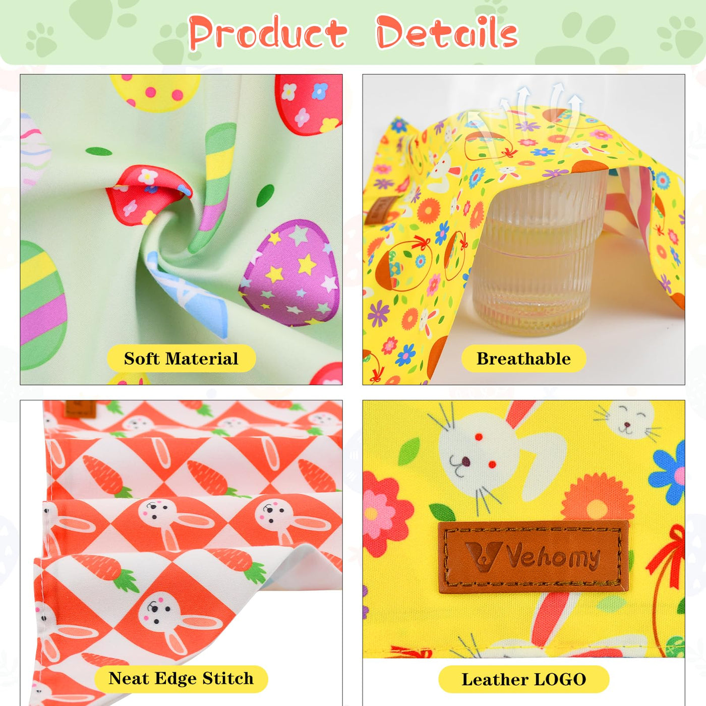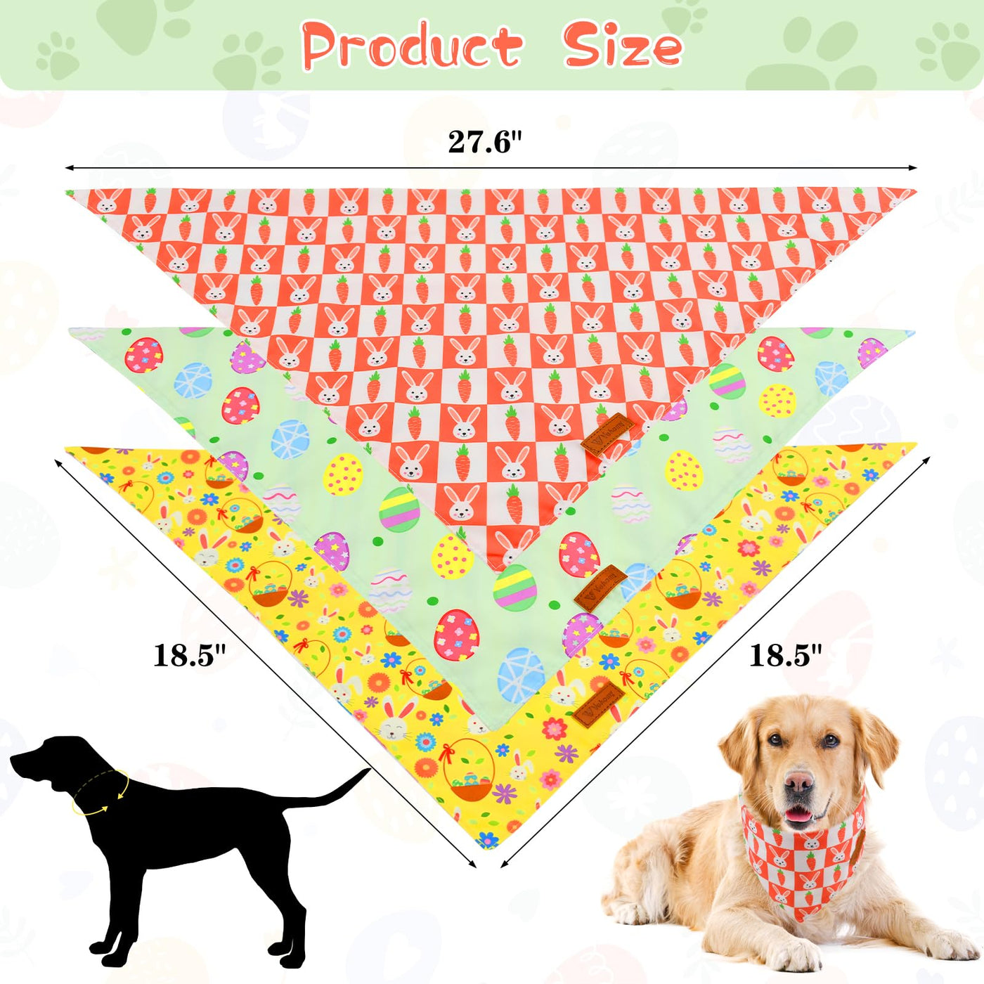 3Pcs Easter Egg Bunny Carrot Pattern Dog Cat Bandanas Reversible Dog Easter Bandana Scarf Bib For Small Medium Large Dogsdress Up Your Furry Friends On Easter, Let Them Enjoy The Festivity With You.Product Features-Easter Themed Patterns: The Puppy Bandanas Are Printed With Cute Bunnies, Easter Eggs, And Carrots, Which Are In Keeping With The Spirit Of The Festival;-Reversible Design: These Easter Dog Bandanas Are Printed Cute Easter Themed Patterns On The Front Sides, And Matching Vertical Stripe, Colorful Plaid, And Wavy Stripe On The Other Sids With Excellent Sewing Process, Stitch Neatly, No Excess Thread, Both Sides Can Be Used;-Soft And Lightweight: The Easter Pet Scarves Are Made Of Polycotton, Soft And Lightweight, No Bundling Feeling To Wear.Product Specification-Material: Polycotton, Soft, Lightweight And Cooling Touch In Summer.-Size: 47*47*70Cm/ 18.5''*18.5''*27.6'', Suitable For Most Kinds Of Dogs And Cats. You Can Fold The Triangle Bibs To Meet Your Pets Size.-3Pcs In A Package: You Will Get 3 Different Style Easter Pet Scarves In Every Package, The Bunny Carrot Pattern Side Match The Colorful Plaid, The Spring Easter Egg Yellow Side Match The Wavy Stripe, The Green Easter Eggs Match The Vertical Stripe.Warm Note-Please Allow 0-1/2Inch Difference Due To Manual Measurement And Elastic Fabric.-Due To Shooting Light Or Angle, Actual Color May Vary Slightly From Image.