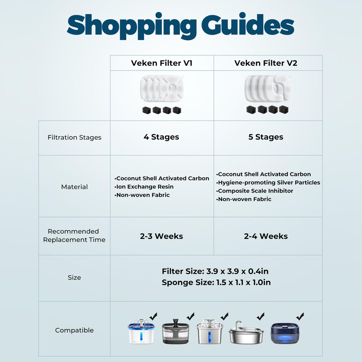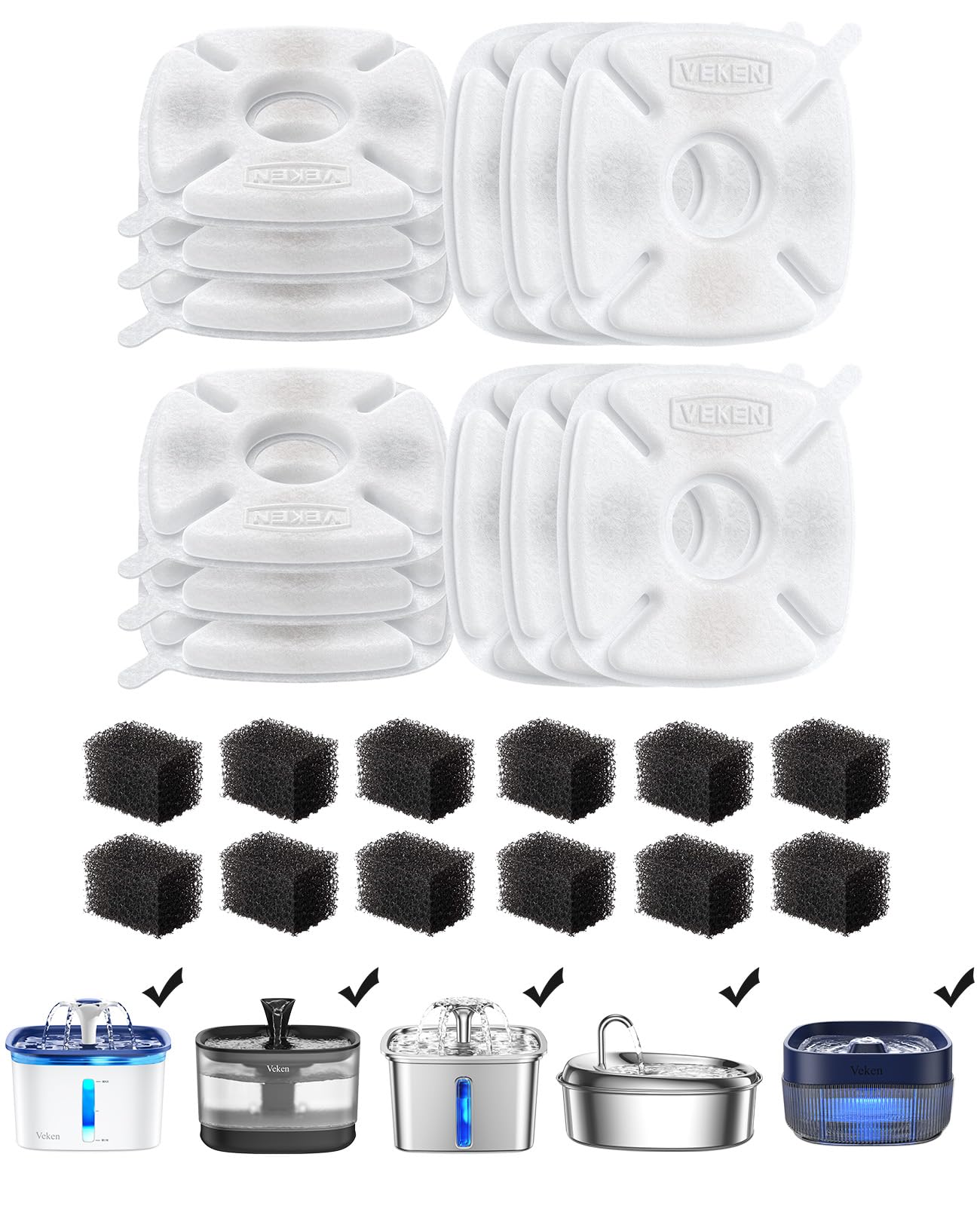 Veken Cat Water Fountain Filter, Classic 12 Pack Replacement Filters & 12 Pack Replacement Pre-Filter Sponges For 67Oz, 95Oz, 13