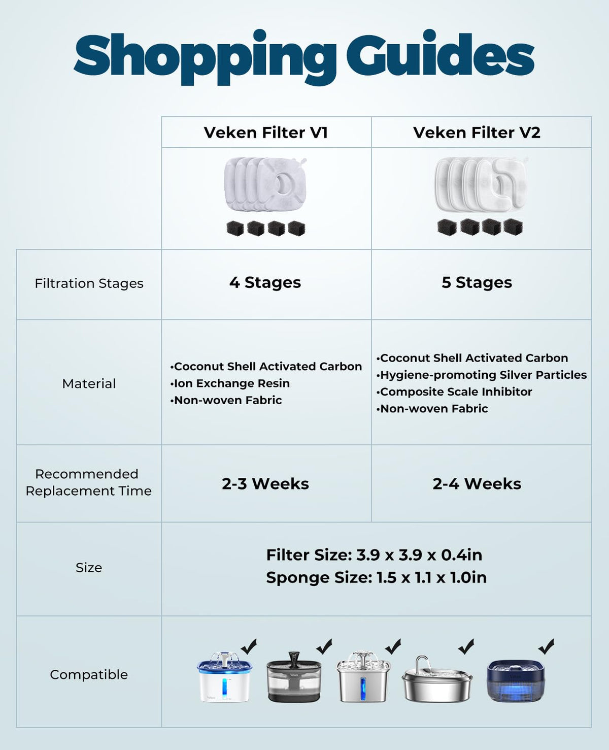 Compatible with Veken 67oz, 95oz, 135oz Pet Fountains and 84oz Stainless Steel Cat Water Fountain.
