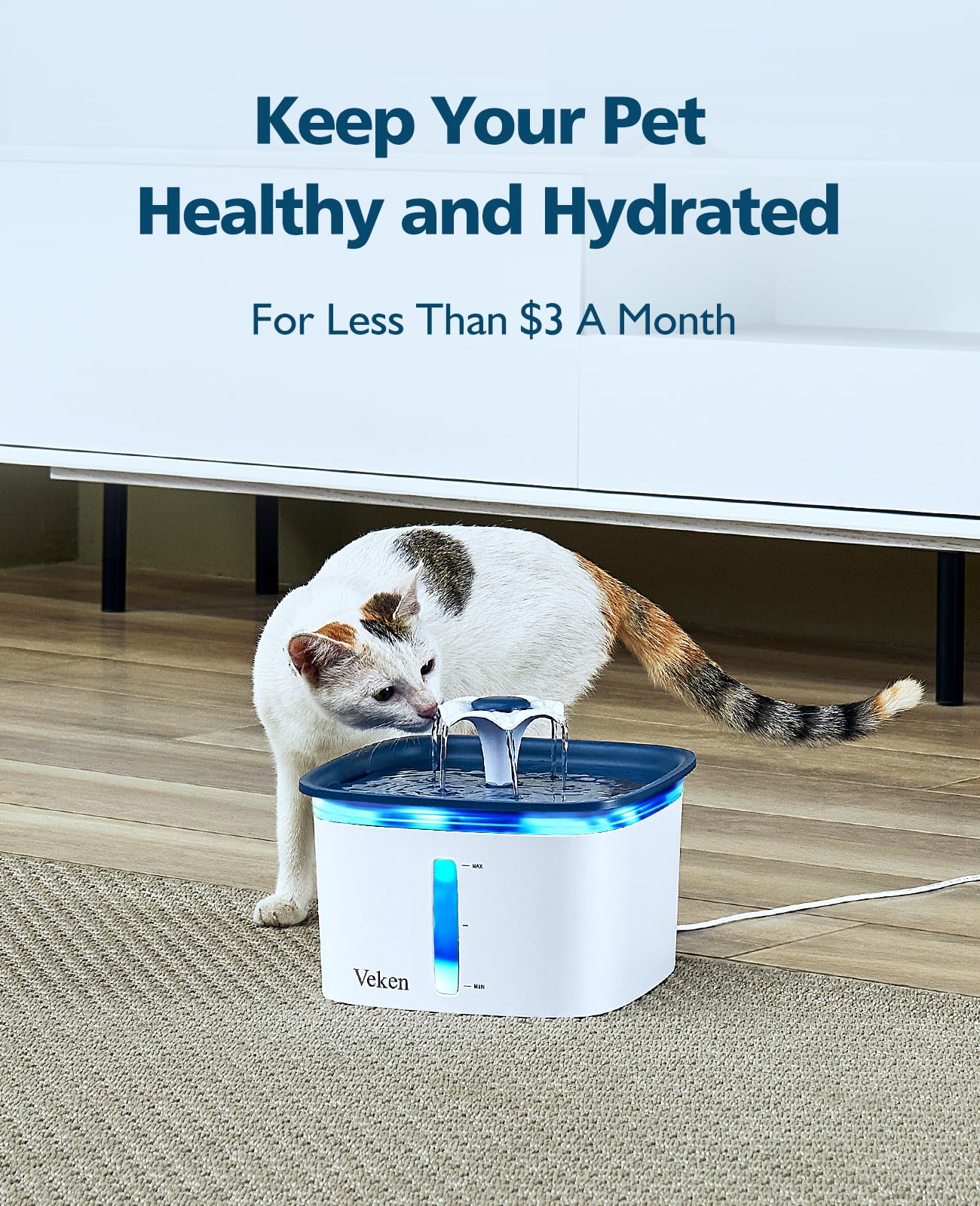 Q: What benefits does using the Veken Cat Water Fountain Filter provide for my pet?A: Using the Veken Cat Water Fountain Filter helps keep your pet healthy by ensuring they drink clean, fresh water, which can increase water consumption and reduce the risk of urinary tract infections.