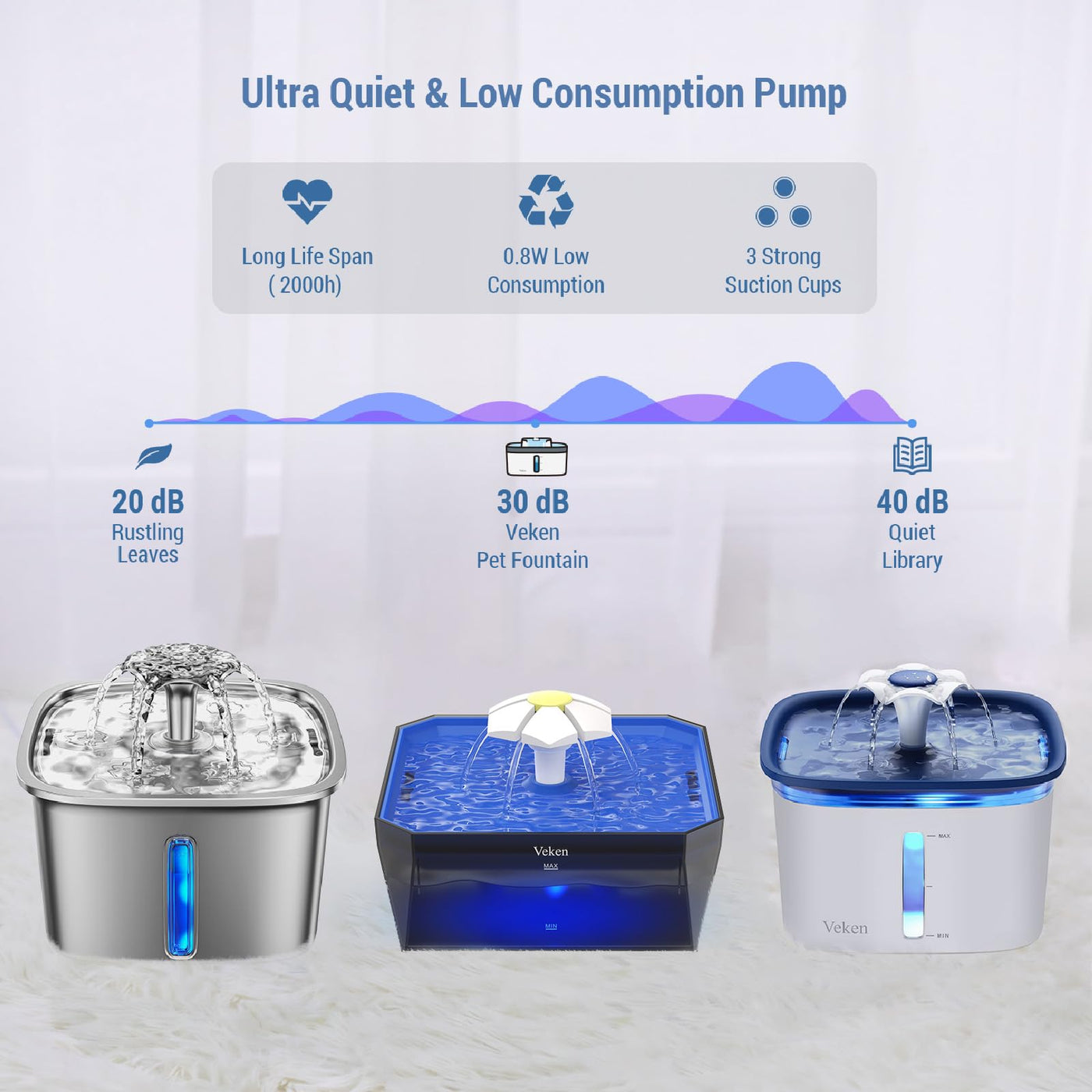 Veken Replacement Pump For 67Oz, 95Oz And 135Oz Pet Fountain Cat Water Fountain Dog Water Fountain Ultra Quiet Long Lifespan Water Pump, Usb Cable, Led Lights