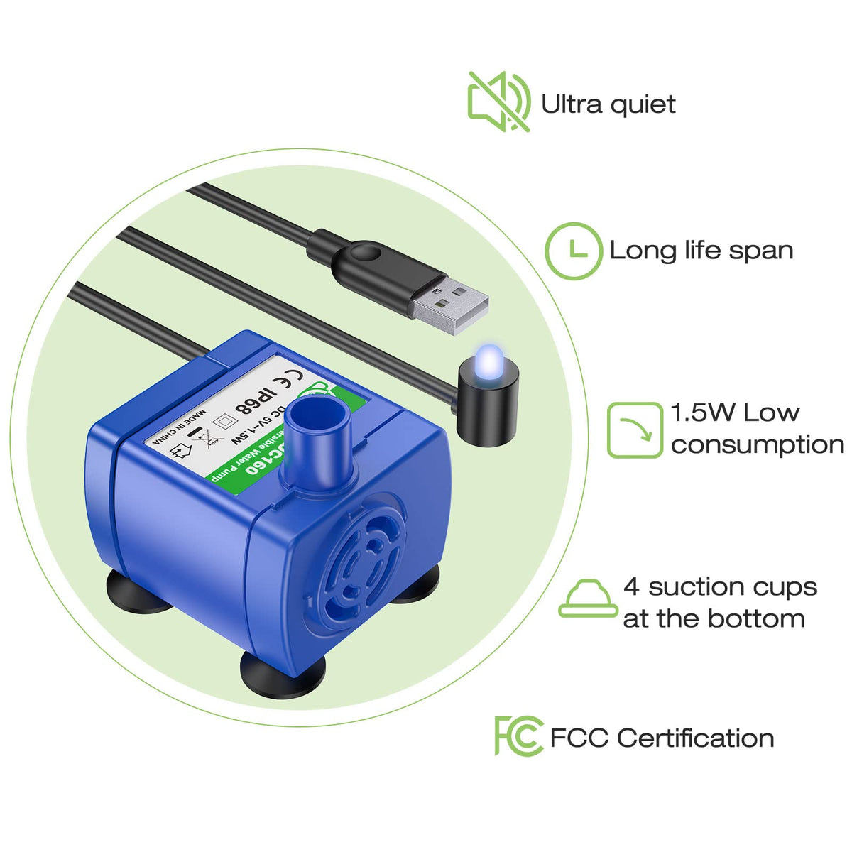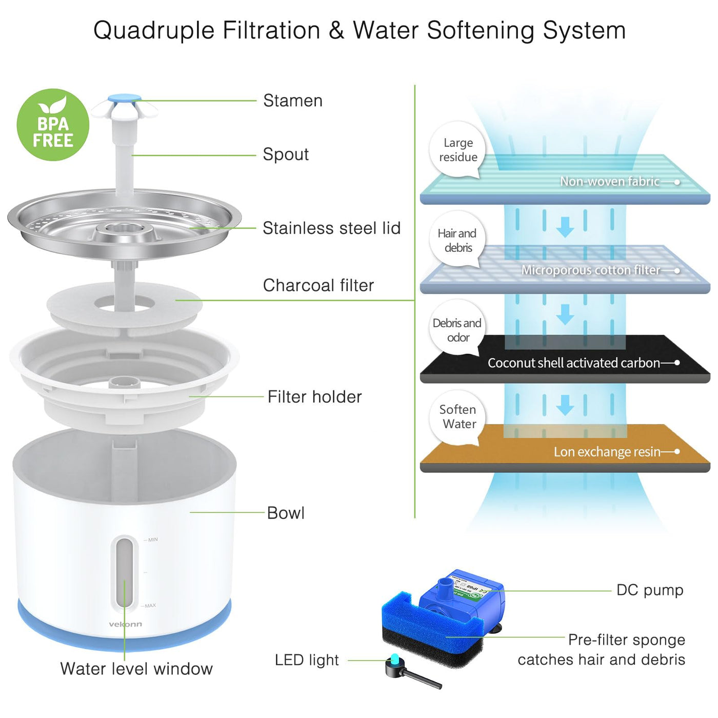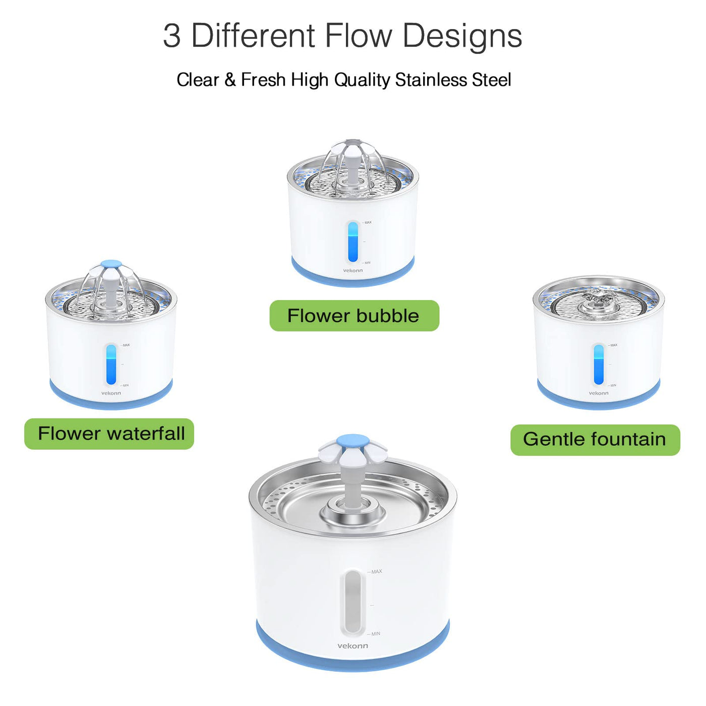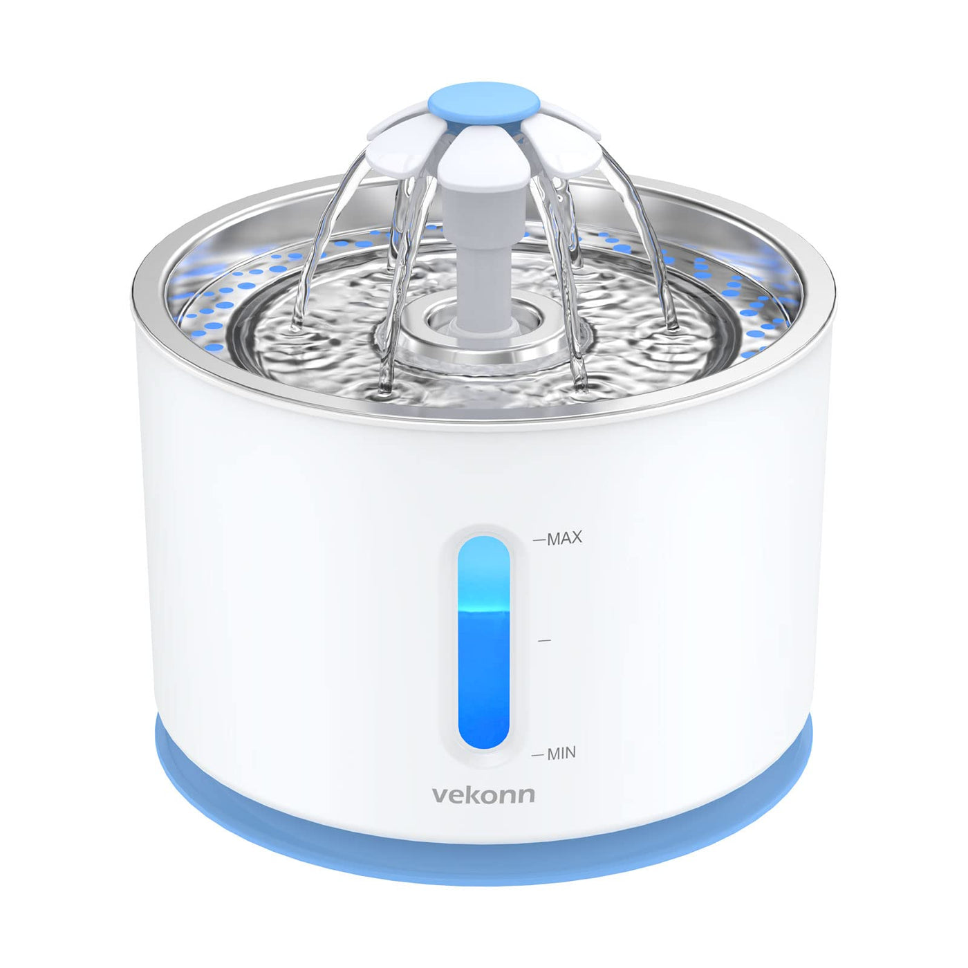 Vekonn 2.4L/81oz Cat Water Fountain Stainless Steel Top, Pet Water Fountain for Small Dog and Cat with LED Light and Water Level