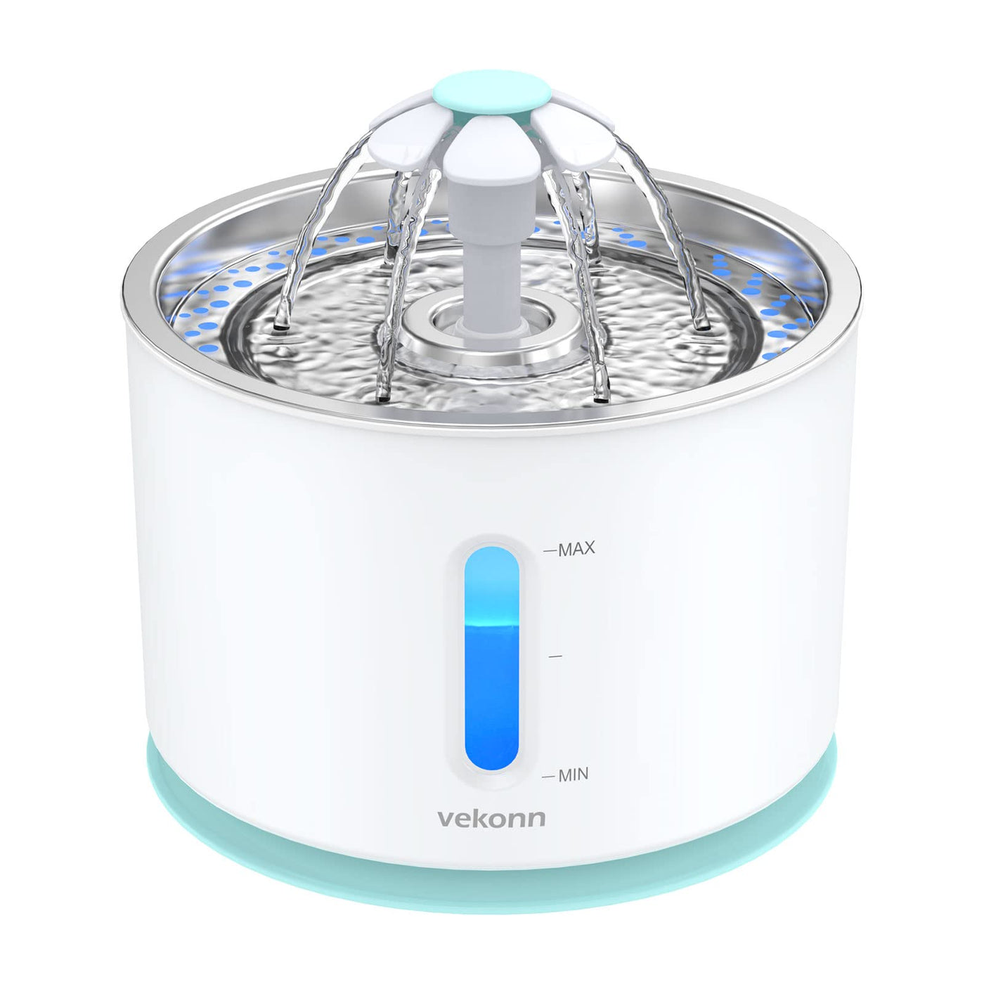 Vekonn cat Water Fountain Stainless Steel Top, Pet Water Fountain for Small Dog and cat with Water Level Window