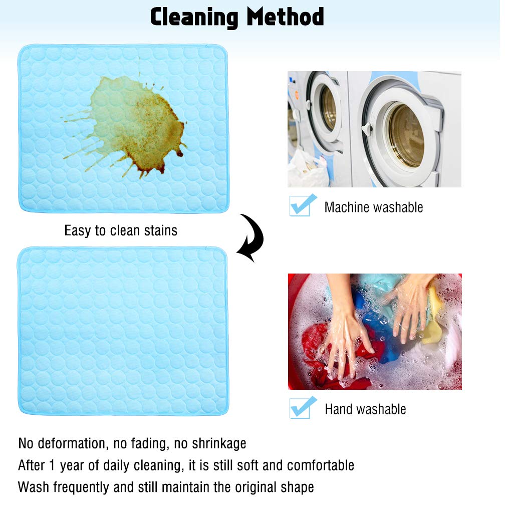 Summer Cooling Mat For Dogs Cats Ice Silk Self Dog Cooling Mat Small Breathable Pet Cooling Crate Pad Outdoor Cooling Mat For Dogs Pet Cooling Mat For Cats Portable & Washable Pet Cooling Blanket For Small Medium And Large Pet Outdoor Or Home Use ?? Features: ?Color: Blue & Grey ?Size: M:28X22In (70X56Cm); Xl:40X28In (102X70Cm) ?Material: Professional Safe And Non-Irritating Cooling Fiber Nylon + Breathable Mesh ? The Vemee Dog Cooling Pad Is A Self-Cooling Pet Cushion That Works Without Refrigeration, Water, Or Electricity. ? Available In 2 Sizes And 2 Colors, It Promises To Keep Your Lovely Pet Feel Cool And Comfy, Indoors, Outdoors Or On The Go. ? Double Sided Available Use ,One Side Is Made Of Self-Cooling Ice Silk, The Other Side Made Of Breathable Mesh, Quite Soft And Comfort. ? Lightweight, As Folds Effortlessly. Breathable Air Holes , Dry And Lightweight. ? The Cooling Pad Bed Can Be Laid Directly On The Floor For Pets To Sleep, Also Can Be Put In The Kennels, Sofa, Bed Etc. ?? Wash Instruction: Machine Washable/Hand Wash / No Bleach / Lay Flat Dry ?? Note: ?''Vemee'' Is Registered Brand On Amazon Brand, Here Is Registered Number:5380156. ?The Actual Color May Vary Slightly From The Online Image Due To Monitor Color Settings. ?Please Allow Slight Measurement Deviation For The Data.