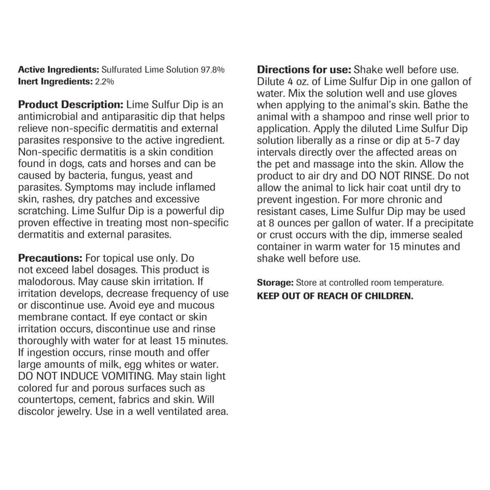 Vet Basics Lime Sulfur Dip- Concentrated Solution- for Dogs, Cats & Horses- 16oz