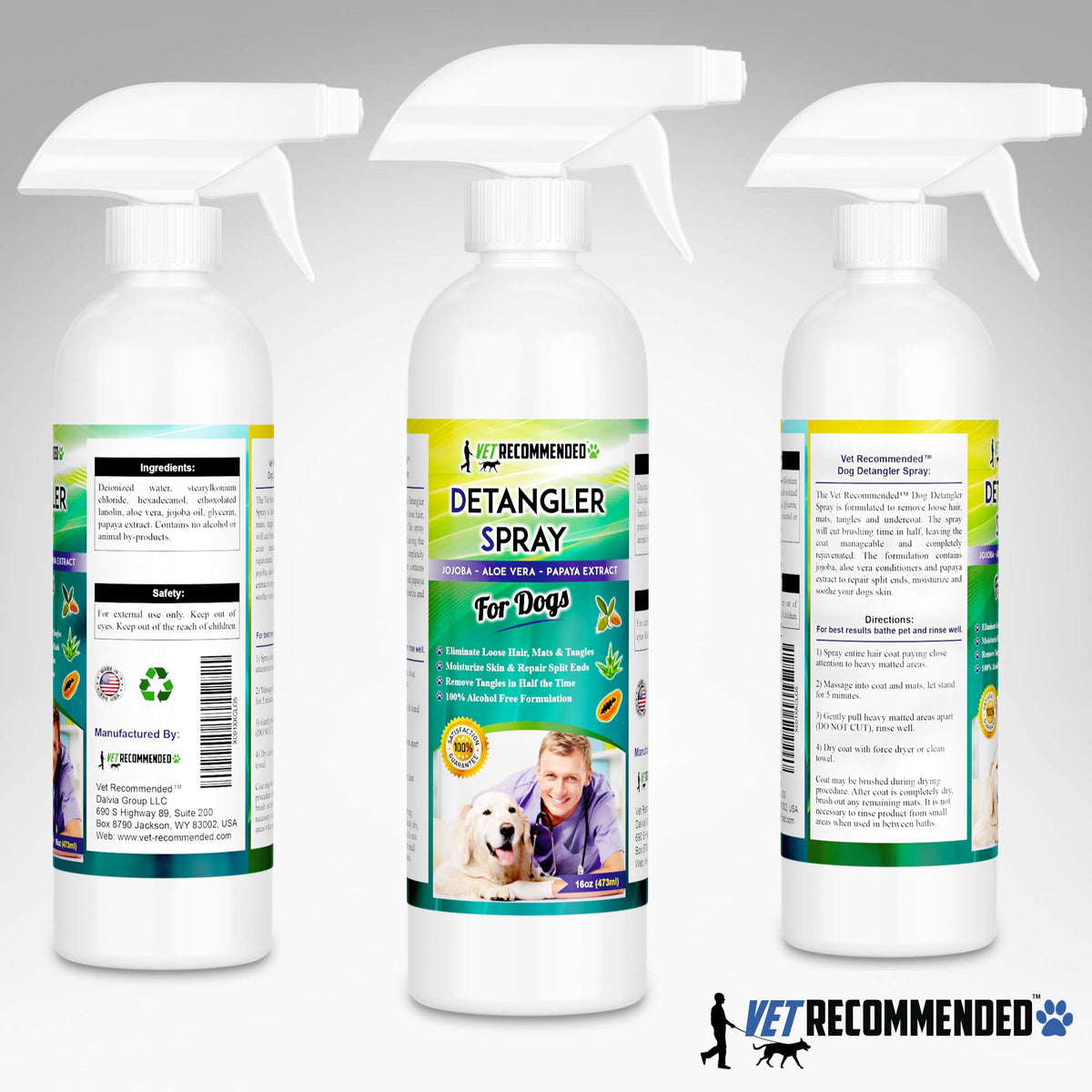 Vet Recommended Dog Detangler Spray & Conditioner – Made From Fresh Natural Extracts Of Papaya, Jojoba & Aloe Vera | Eliminate Loose Hair, Remove Matts And Rejuvenate Coat | Made In Usa | 16 Oz