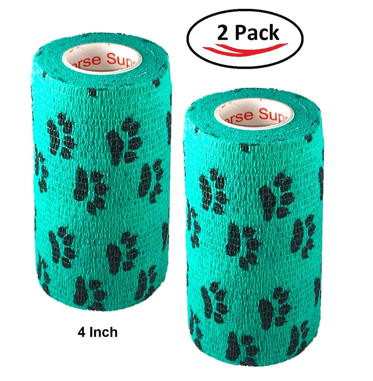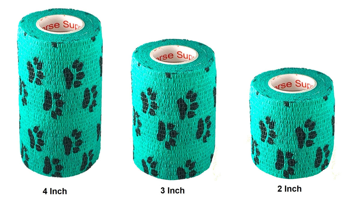 Vet Wrap Wrap Tape (Teal with Paws) (2 Pack) (4 Inch x 15 feet) Self Adhesive Adherent Adhering Cohesive Flex Self Stick Bandage