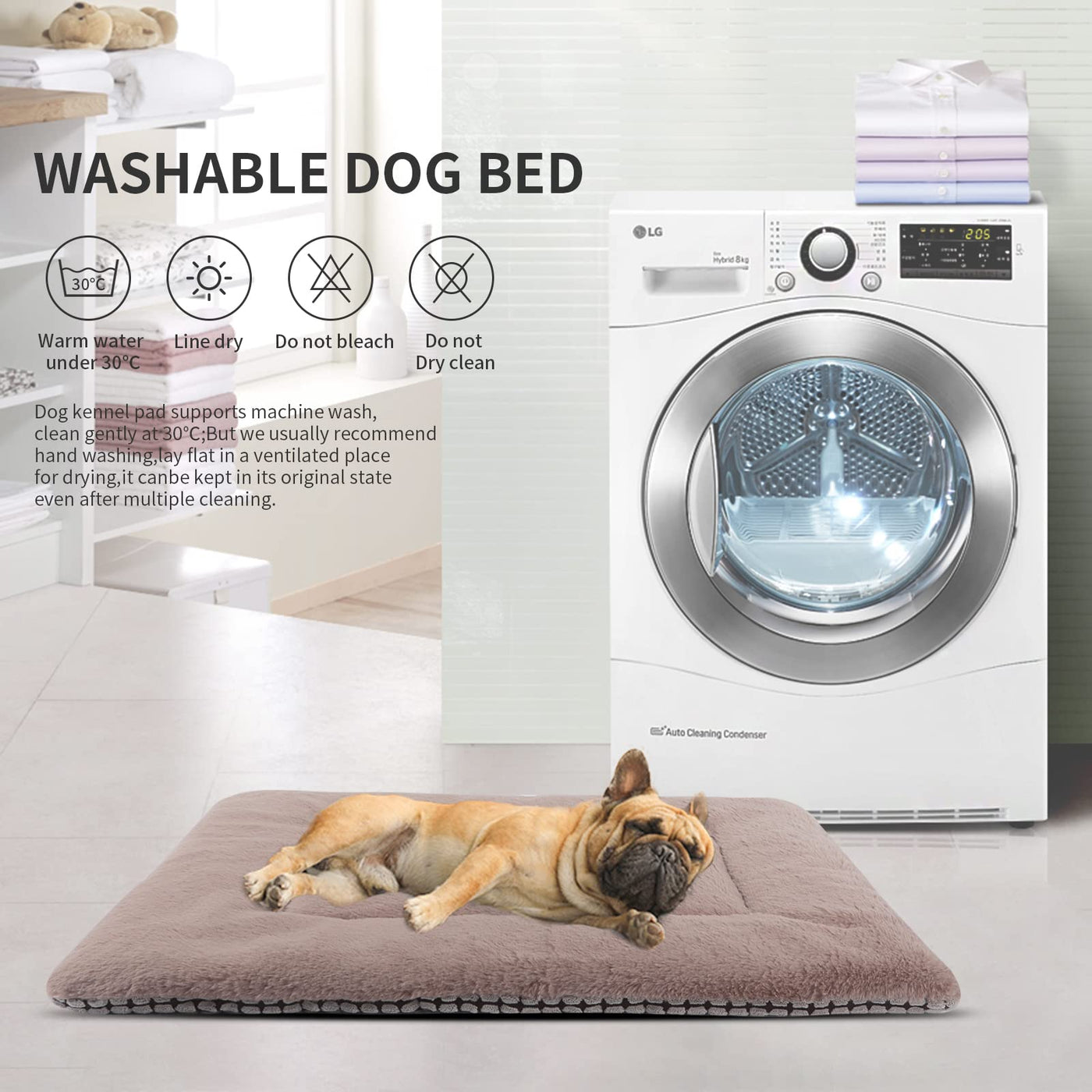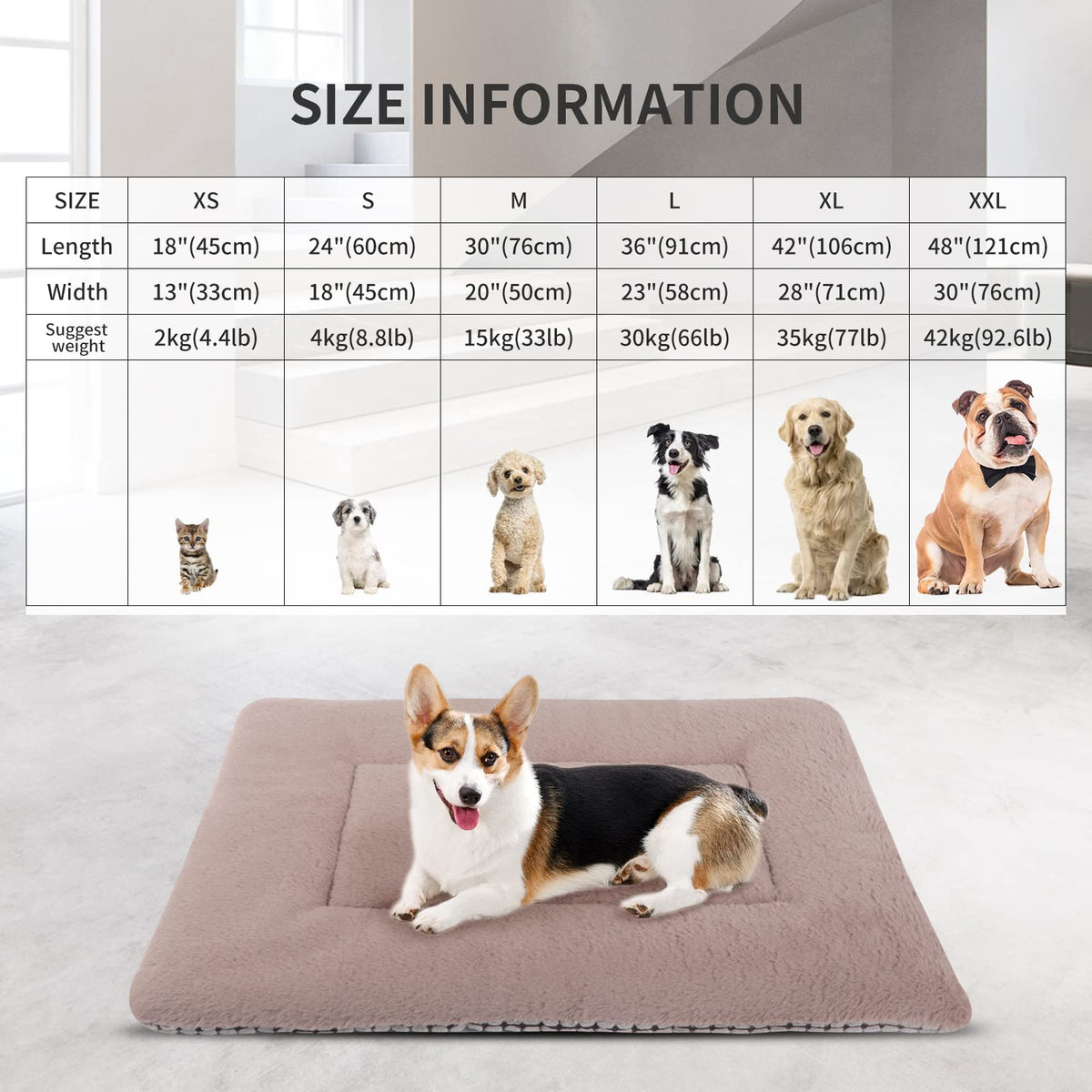 This cozy and comfortable dog mat for sleeping is made of very soft fabric. Designed to provide your dog and cat with maximum comfort and a good night's sleep. And the crate liner dog bed is available in four sizes to fit all standard crates, making it easy to create a cozy and comfortable pet home for your furry friend. Washable and Reversible design provides more convenience for you to take care of your pet.