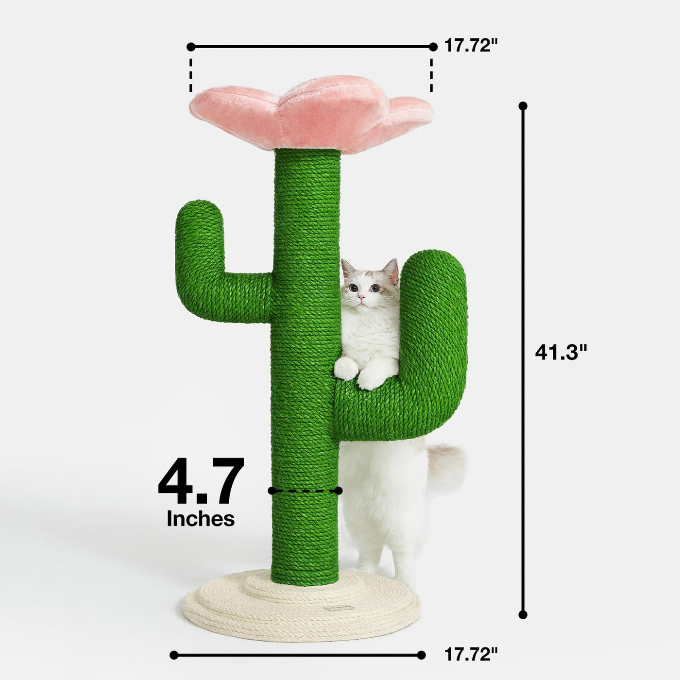 Vetreska Cat Scratching Post Cactus Cat Scratchers For Indoor Cats, 41.3' Tall Vertical Cat Tree With Hammock, Full Wrapped Sisal Rope Cat Scratch Post For Adult Cats And Kittens