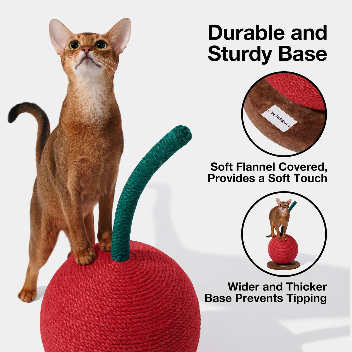 Vetreska Cherry Cat Scratching Post, 22.64' Tall Cat Scratcher With Sisal Rope Ball, Vertical Cat Scratch Post Claw Scratchers For Indoor Cats, Kitten Supplies