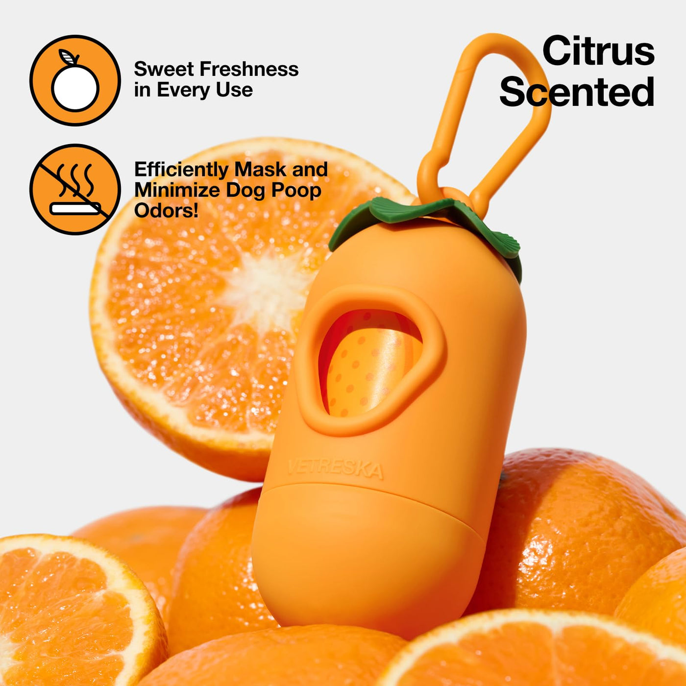 Vetreska Dog Poop Bag Dispenser With Citrus Scented Waste Bags, Leak Proof, Extra Thick And Large Pet Poop Bags For Walking Dog