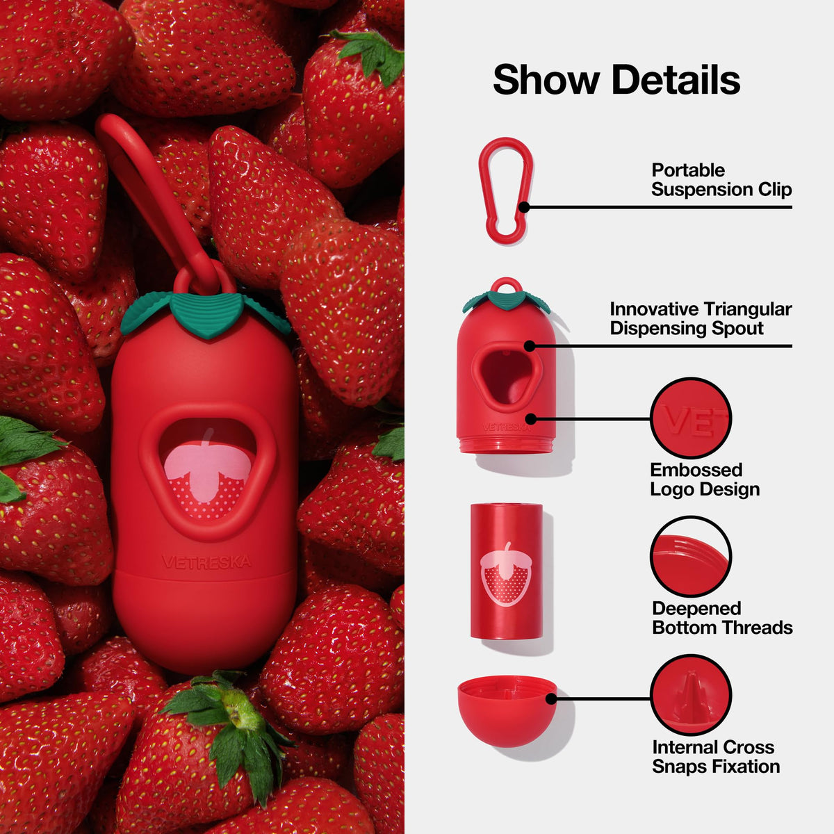 Vetreska Dog Poop Bag Dispenser With Strawberry Scented Bags, Leak Proof, Extra Thick And Large Pet Waste Bags,1 Count Bag Holde