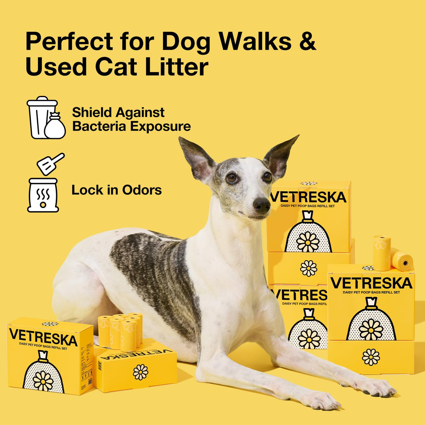 Vetreska Dog Poop Bag Rolls Daisy Scented Leak-Proof Pet Waste Bags Thick And Large Trash Bags For Dog Walking 20 Refill Rolls 3