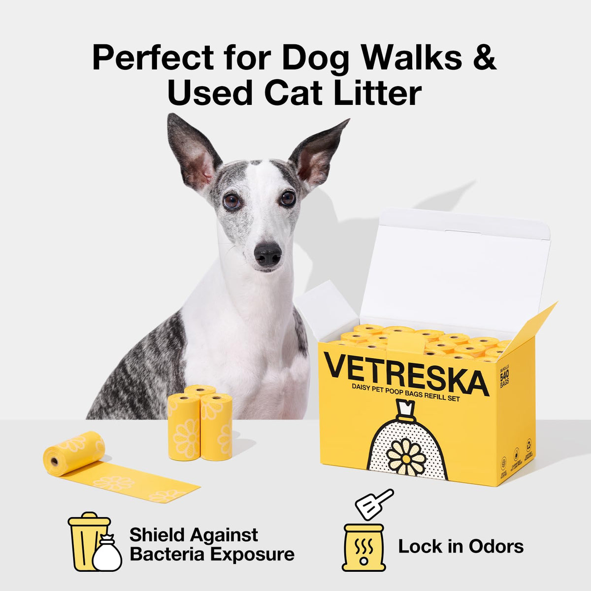 Vetreska Dog Poop Bag Rolls Daisy Scented Leak-Proof Pet Waste Bags Thick And Large Trash Bags For Dog Walking 36 Refill Rolls 5