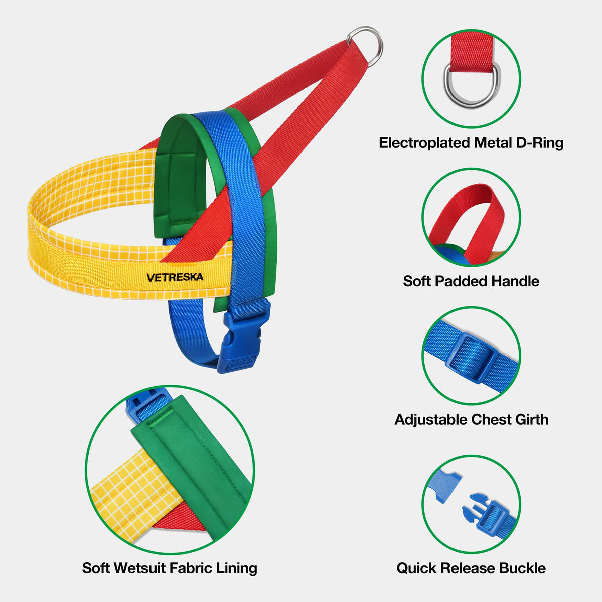 Description: Introducing The Vetreska Chroma Pet Harness &Amp; Leash Set, A Vibrant Collision Of Bold Hues That Sets The Stage For Your Pet'S Fashion-Forward Adventures! This Ensemble Is The Ultimate Style Statement For Your Fashionable Fur Companion, Available In Two Distinct Styles To Suit Their Personality With Panache. Getting Your Pet Ready Is A Breeze - Slip The Harness Over Their Head, Adjust The Chest Circumference For A Snug Fit, And Secure It With A Chic Buckle. But This Isn'T Just About Looks; It'S About Comfort Too. The Harness Features A Luxuriously Widened Neoprene Lining, Ensuring Your Pet Feels Like They'Re Wearing A Designer Piece. Even The Leash Is Fashion-Forward, With A Neoprene-Lined Handle That Pampers Your Hands During Your Stylish Strolls. Safety Is Paramount With Multiple Reinforced Seams, Providing Peace Of Mind On Every Outing. With The Vetreska Chroma Pet Harness &Amp; Leash Set, Your Pet Will Not Only Be The Talk Of The Town But Also Enjoy The Utmost Comfort And Security While Strutting Their Stuff. It'S Time To Make Every Walk A Fashion Runway! Basic Info: Contents: 1 Pet Harness And 1 Leash Color: Red, Yellow, Green, Blue Material: Polyester Product Size:Xs: Chest: 15.7~20.9 Inches, Neck: 9.8~14.6 Inches, Leash Length: 70.9 Inches, Leash Width: 0.6 Inches, Applicable Weight: 9~15 Lbs.S: Chest: 19.3~26.4 Inches, Neck: 12.2~16.9 Inches, Leash Length: 47.2 Inches, Leash Width: 1.2 Inches, Applicable Weight: 15~35 Lbs.M: Chest: 22.8~29.9 Inches, Neck: 13.8~20.9 Inches, Leash Length: 47.2 Inches, Leash Width: 1.2 Inches, Applicable Weight: 30~55 Lbs. Net Weight:Xs: 0.3 Lbs.S: 0.5 Lbs.M: 0.5 Lbs.