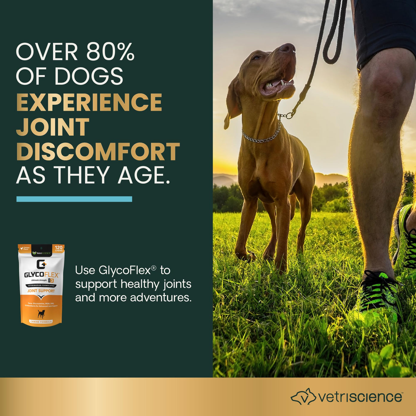 VetriScience Glycoflex 3 Vet Strength Glucosamine for Dogs Hip and Joint Supplement, Chicken, 60 Chews - Clinically Proven Mobil