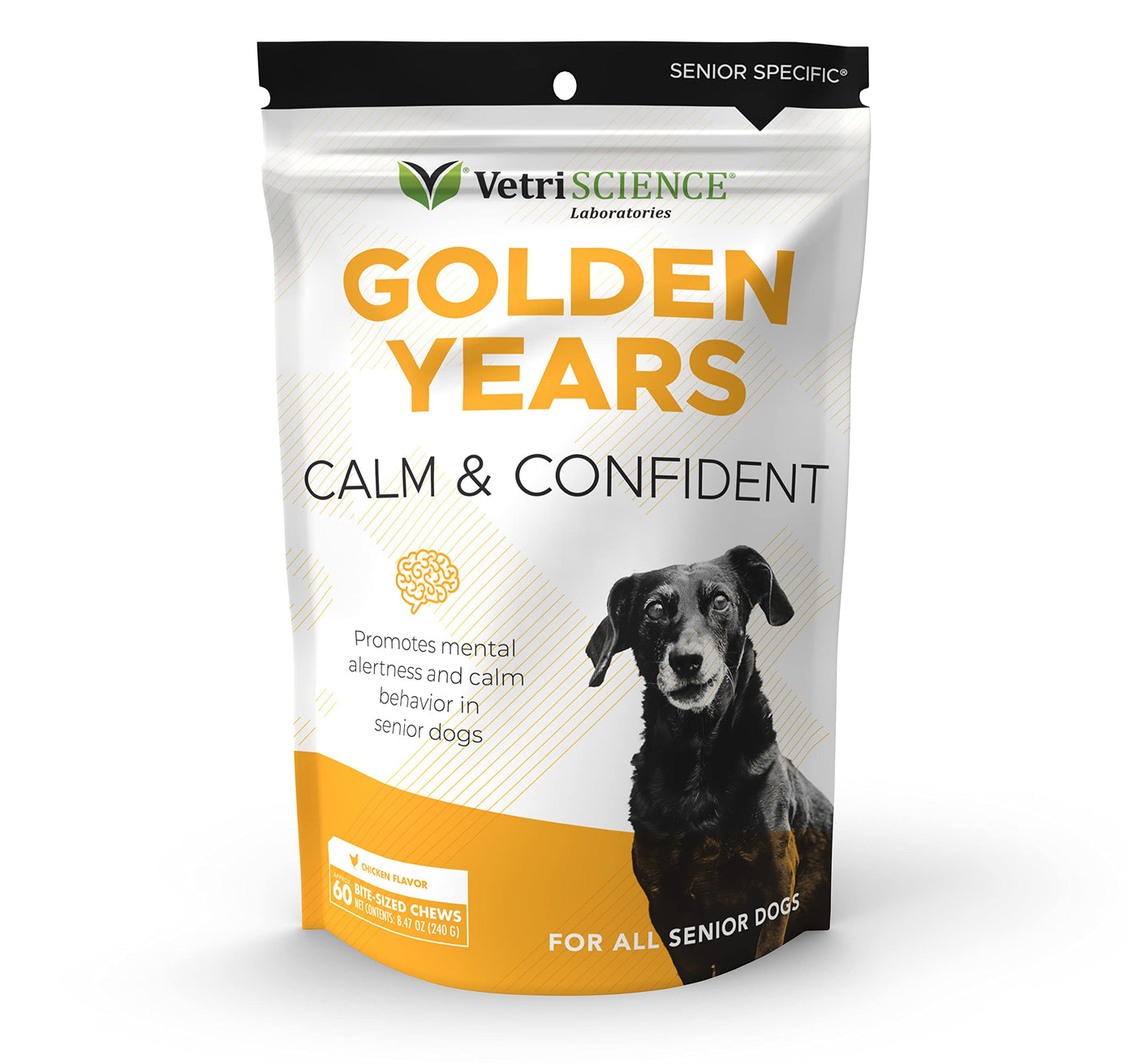 IMPROVE COGNITIVE FUNCTION - Golden Years Calm and Confident promotes alertness while reducing confusion, anxiety, and disorientation in senior dogs | SPECIALLY FORMULATED FOR SENIOR DOGS - Calm & Confident uses Colostrum Calming Complex and L-Theanine to promote mental processing, memory and relaxed behavior | AN END TO THAT HELPLESS FEELING - We feel helpless when we see our senior dog undergo behavioral changes as they get older. Aging can lead to cognitive issues, including confusion, disorientation and increased irritability. Golden Years is specially formulated with senior dogs in mind to help them feel relaxed and more alert | PROVEN INGREDIENTS - Sharp-PS Green has been clinically shown to promote cognition and positive behavior in senior dogs. Colostrum and L-Theanine work together to relax anxiety and nervousness, providing a happier, more fulfilling life for your best friend | MADE IN THE USA - At VetriScience, our mission is to help pets live happier, healthier lives. Thats why all of our products are made with care right here in the USA and formulated by veterinarians