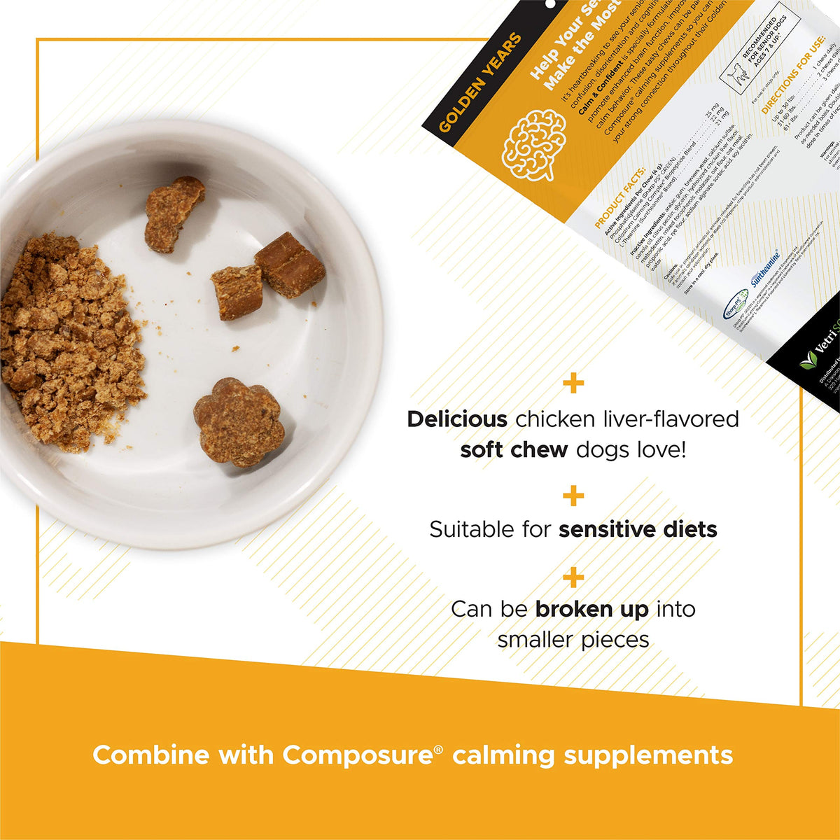 VetriScience Golden Years Calm and Confident Cognitive Support for Senior Dogs, Chicken, 60 Chews - Confusion, Anxiety, and Rest