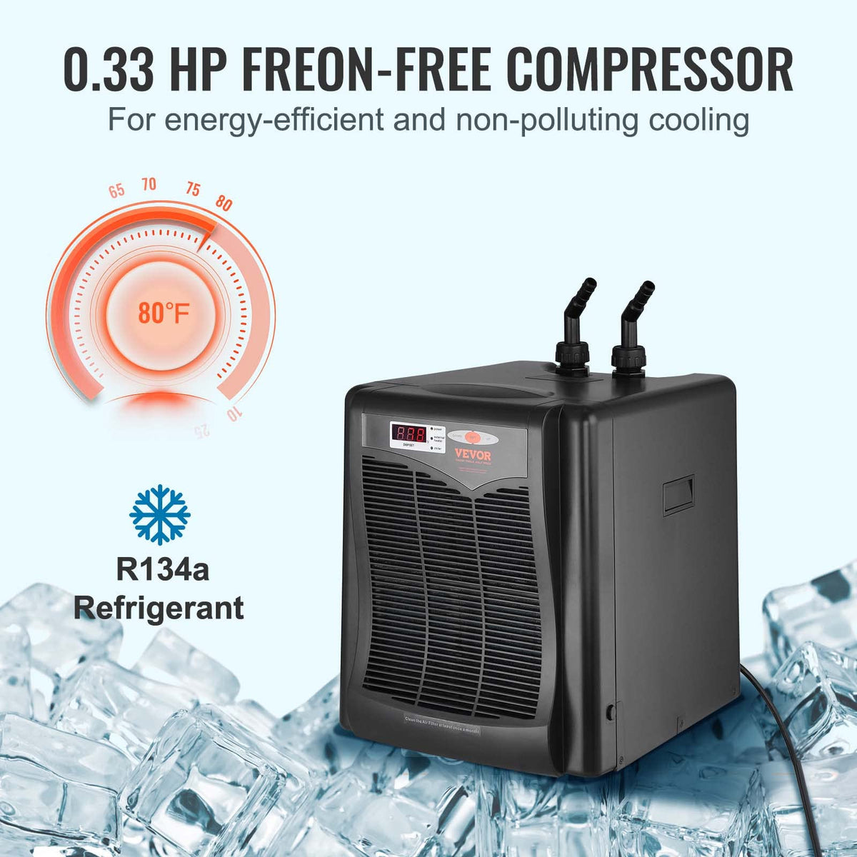 VEVOR Aquarium Chiller, 110 Gal 416 L, 1/3 HP Hydroponic Water Chiller, Quiet Refrigeration Compressor for Seawater and Fresh Wa