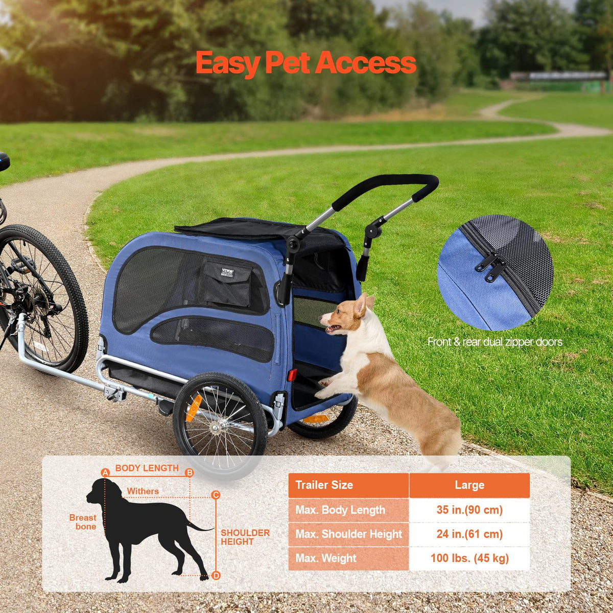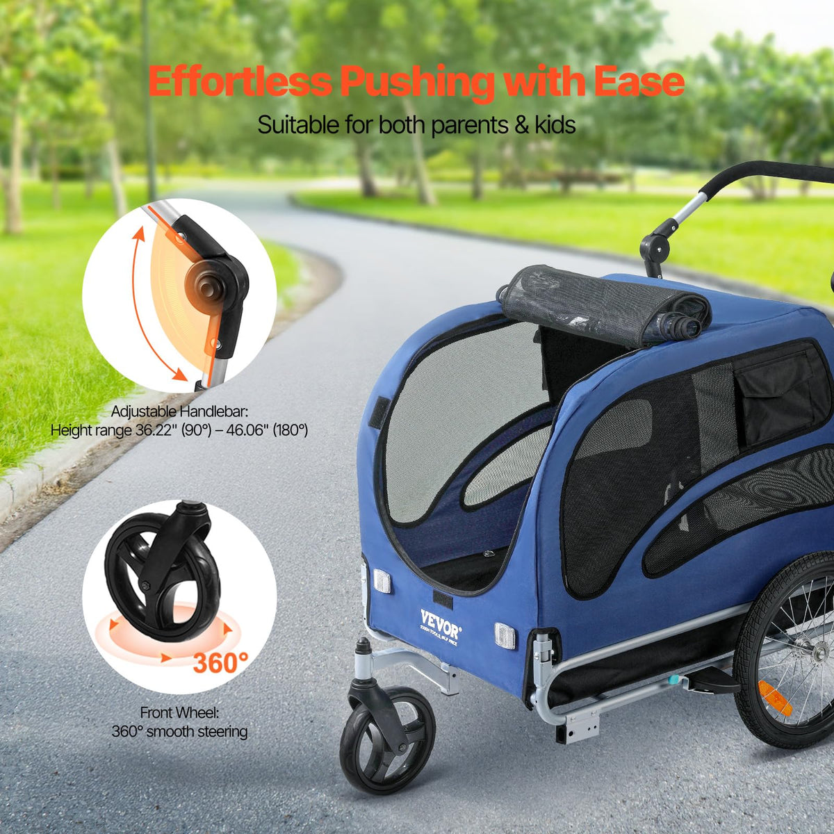 VEVOR Dog Bike Trailer, Supports up to 100 lbs, 2-in-1 Pet Stroller Cart Bicycle Carrier, Easy Folding Cart Frame with Quick Rel