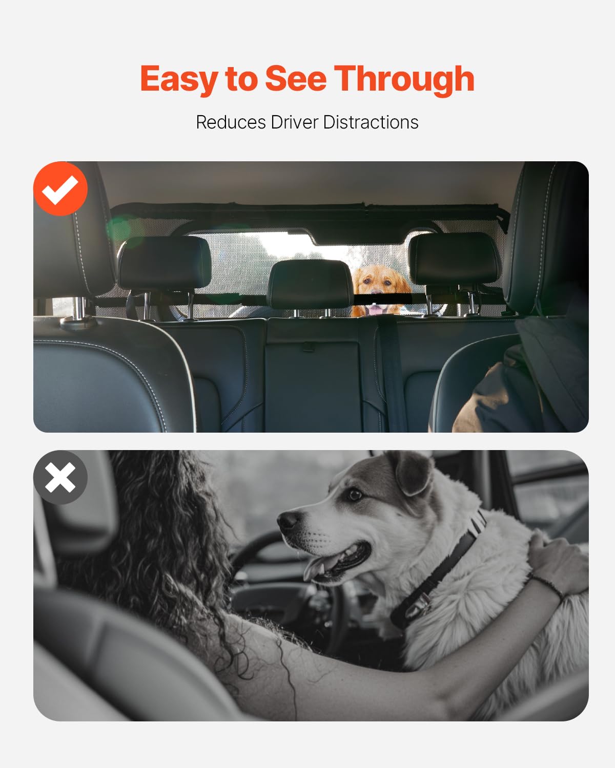 VEVOR Dog Car Barrier, 46'' Wide Car Divider for Cargo Area, Vehicle Pet Barrier with See Through Net Mesh, Universal-Fit Dog Ca