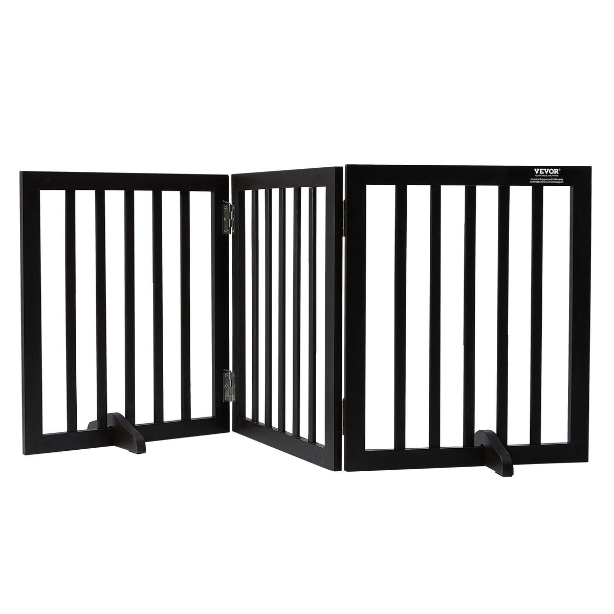 Vevor Free Standing Dog Gate, Wooden Freestanding Pet Gate 24' H X 60' W, 3 Panels Foldable Dog Gate For Wide And Narrow Passageways, Expandable Dog Barrier With Silent Foot Support For Indoor, Brown
