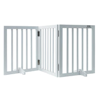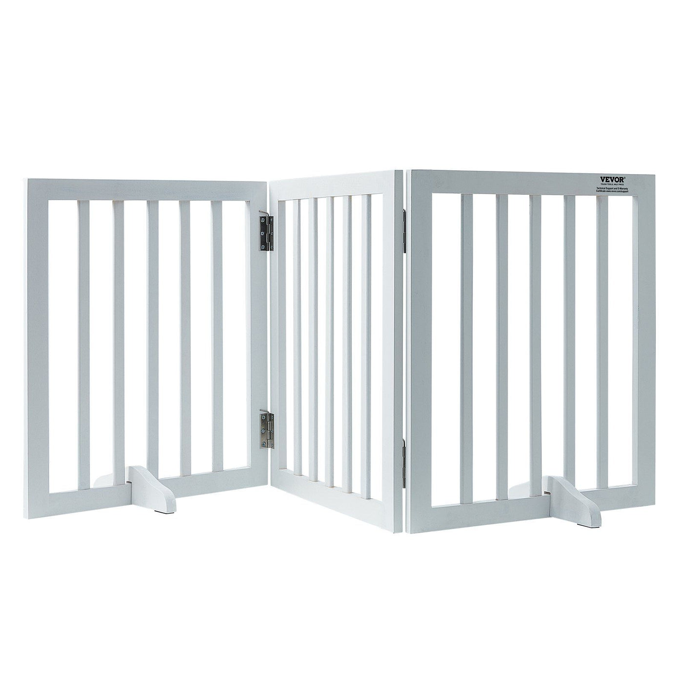 Vevor Free Standing Dog Gate, Wooden Freestanding Pet Gate 24' H X 60' W, 3 Panels Foldable Dog Gate For Wide And Narrow Passageways, Expandable Dog Barrier With Silent Foot Support For Indoor, White