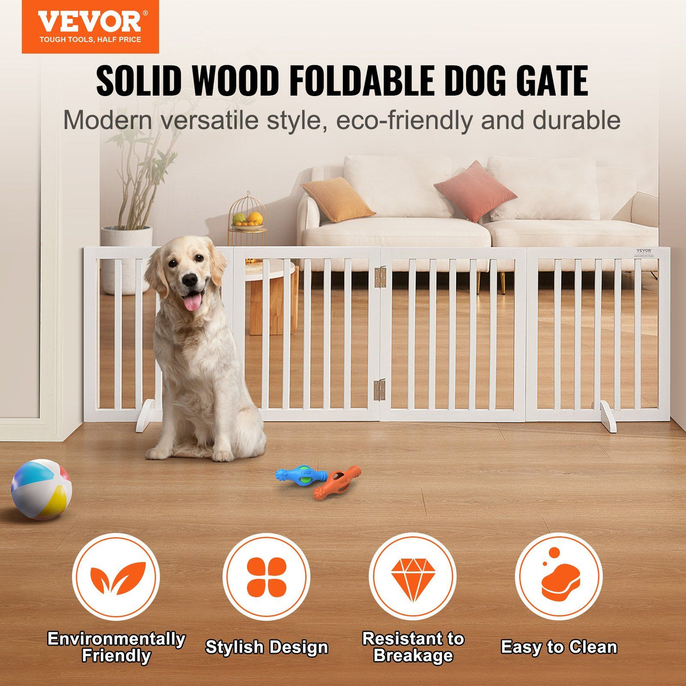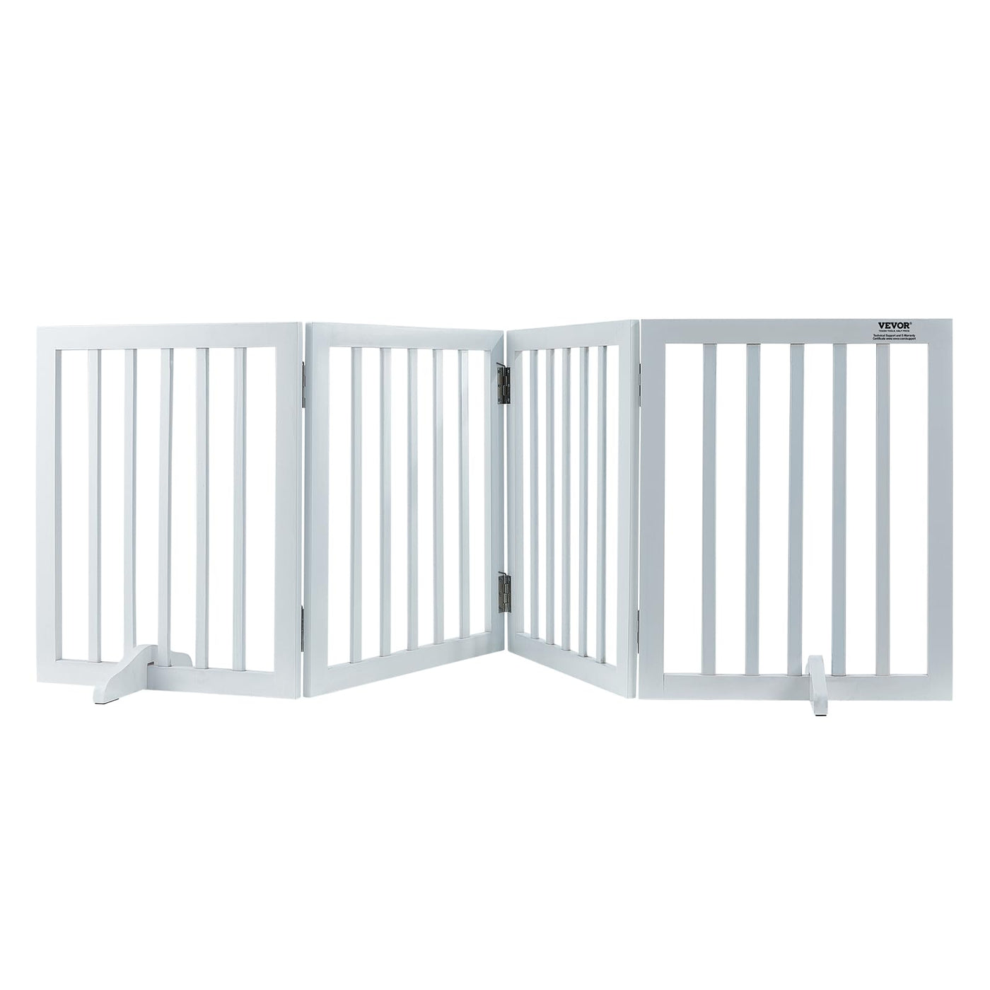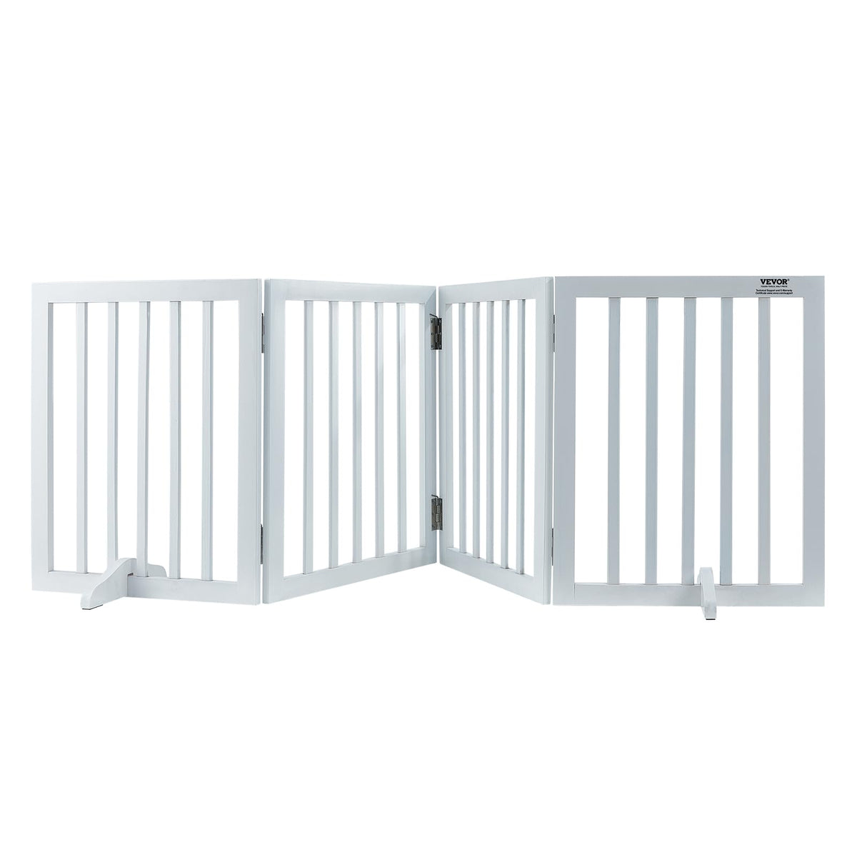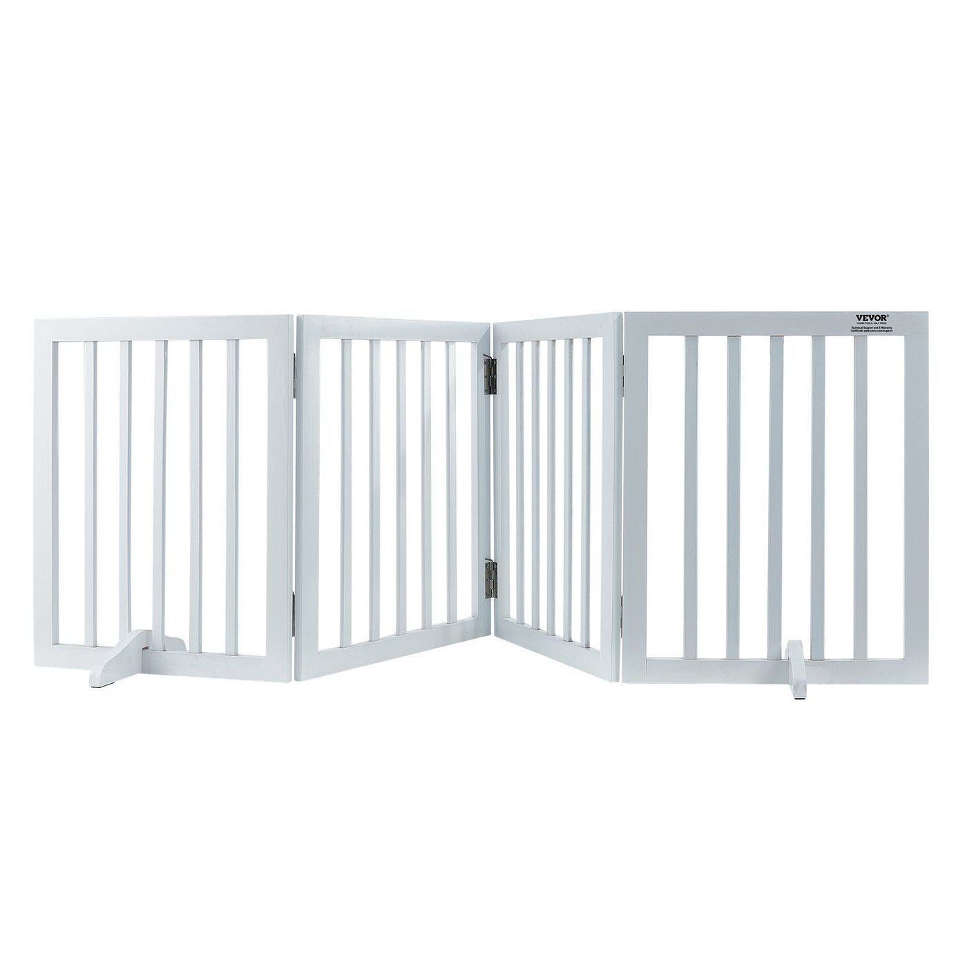 Vevor Free Standing Dog Gate, Wooden Freestanding Pet Gate 24' H X 80' W, 4 Panels Foldable Dog Gate For Wide And Narrow Passageways, Expandable Dog Barrier With Silent Foot Support For Indoor, White