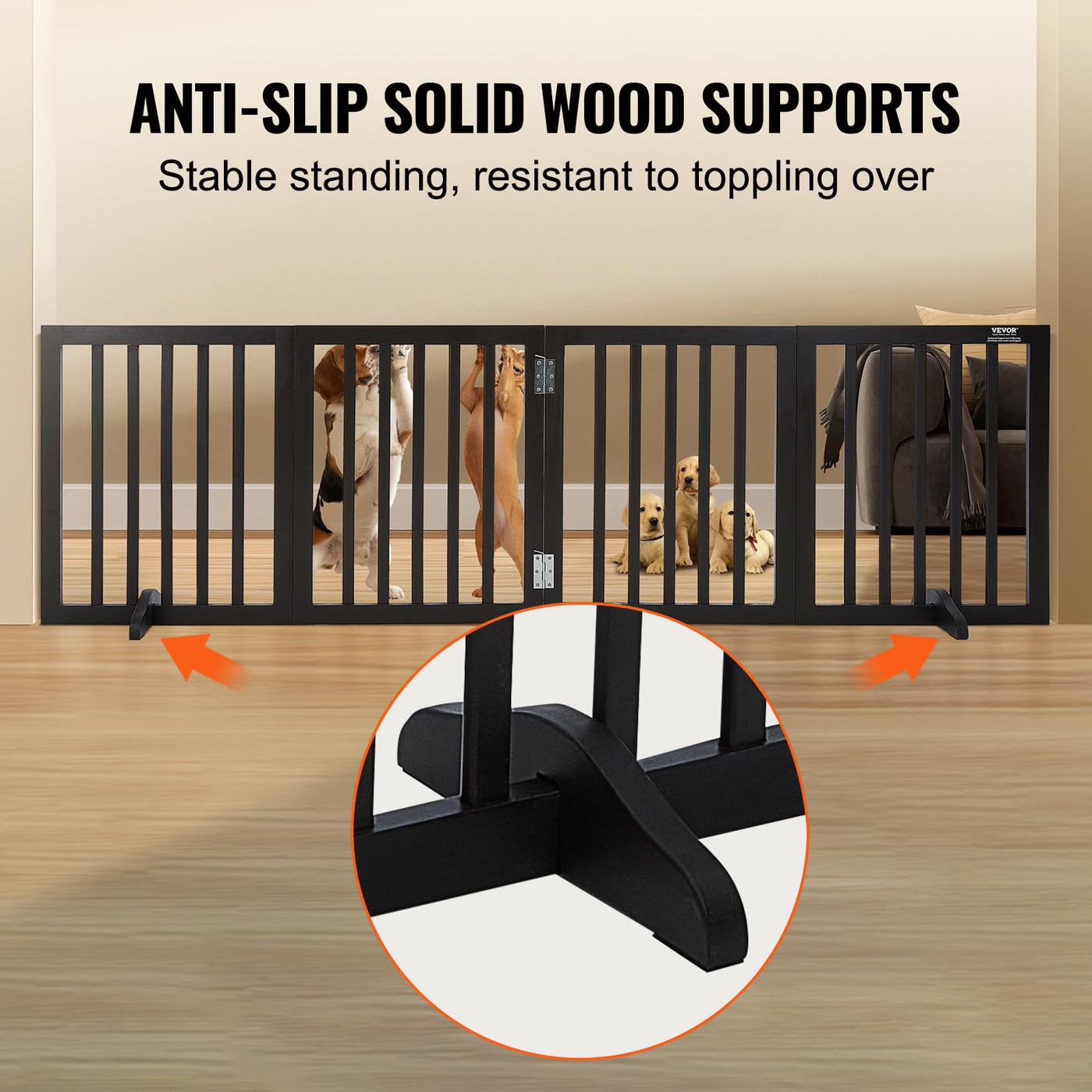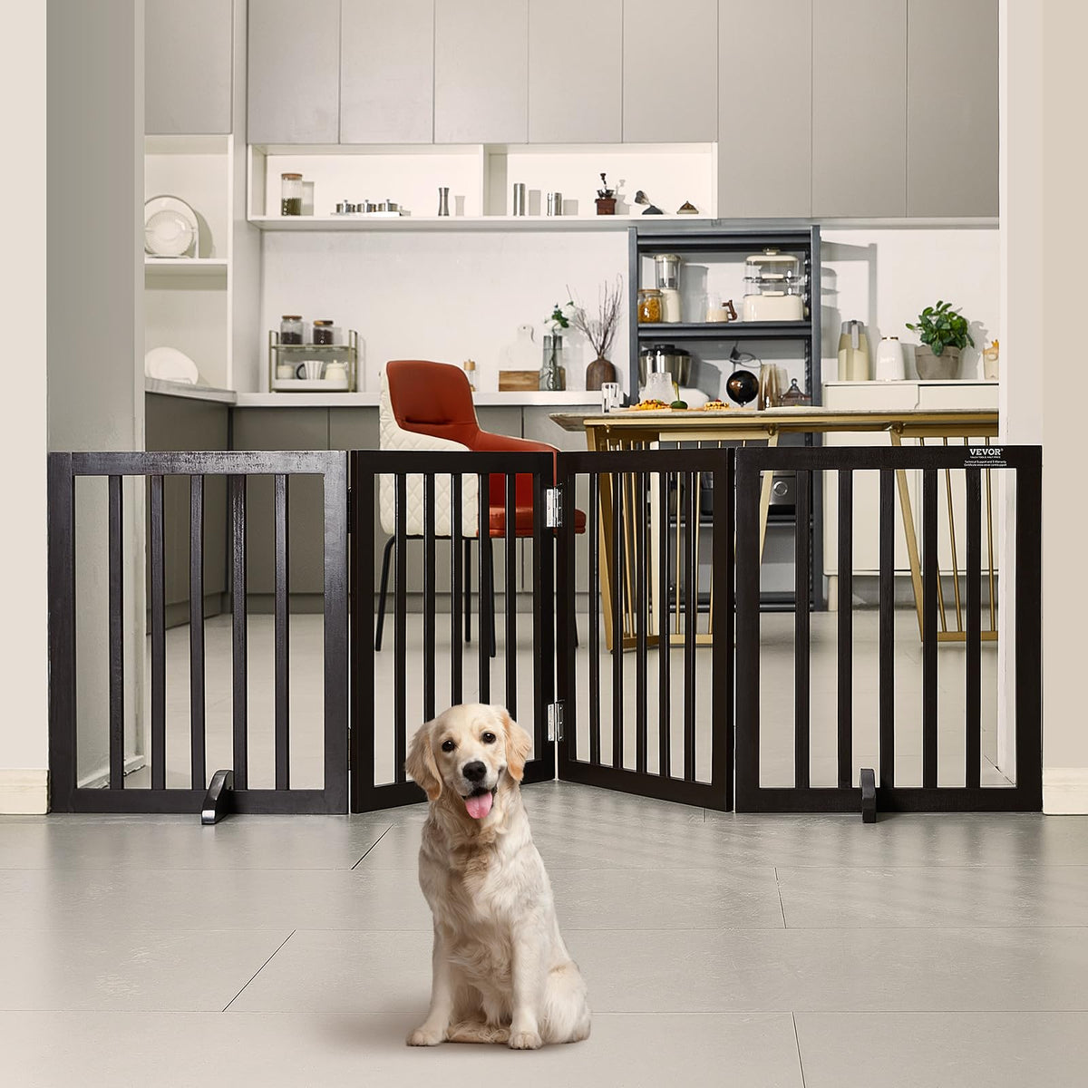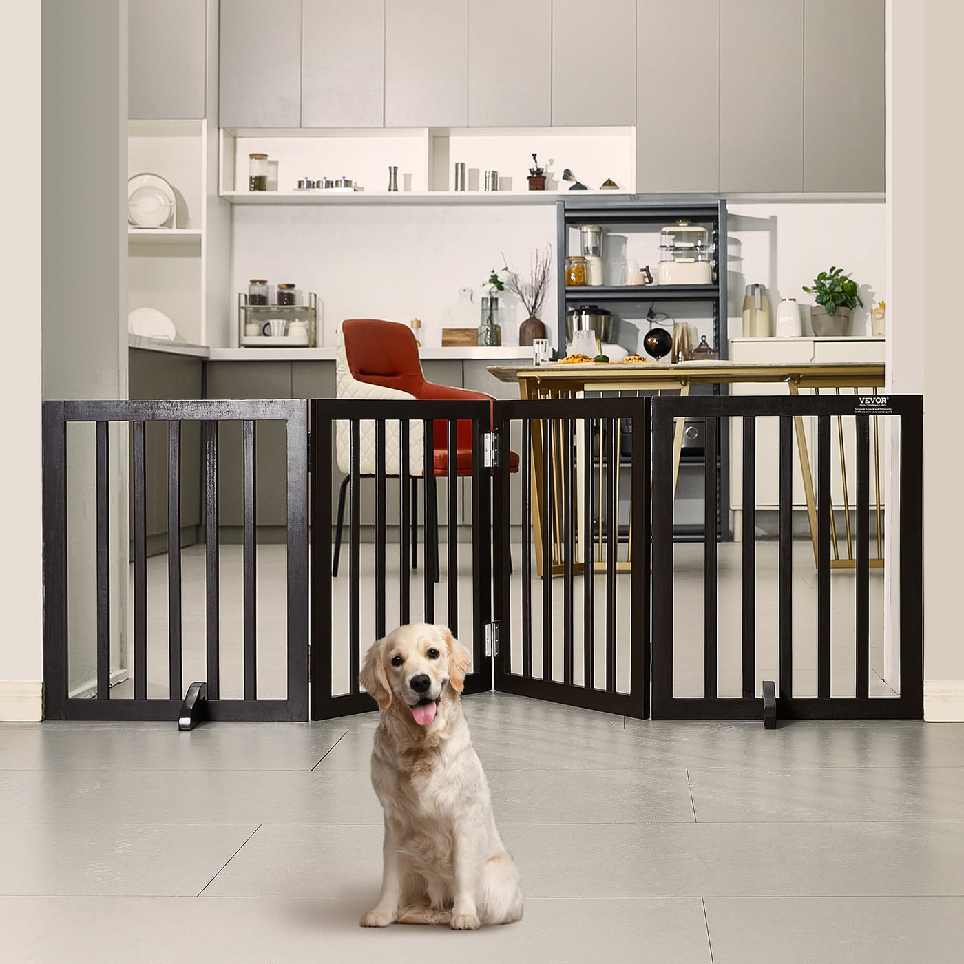 VEVOR Freestanding Dog Gate, Wooden Free Standing Pet Gate 80''W x 24''H,4 Panels Foldable Dog Gate for Wide & Narrow Passageway