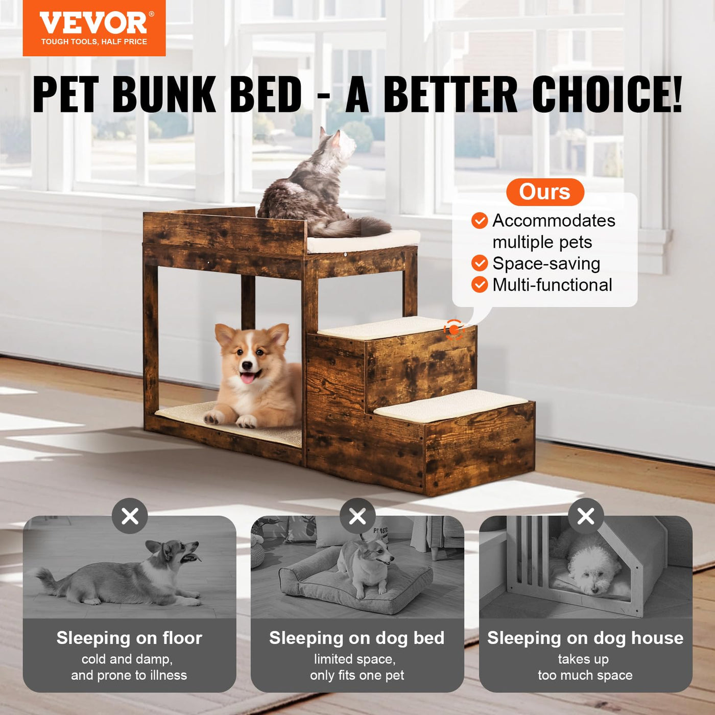 Multifunctional Design: Combining the double-decker pet bed and the pet ladder into one, the pet window perch can provide pets with both upper and lower double resting space, so pets can choose where they want to rest, and it can also be used to accommodate 2 or more pets at the same time, saving space. The pet ladder can be used separately, with the help of the ladder pets can easily climb up and down, avoiding the impact of frequent jumping on the joints. | Sturdy And Durable: Built with high quality wood, with solid structural support, the whole is not easy to shake, your pet can play to their hearts content. | Not Easy To Slip And Fall: Fully consider the pets like to jump up and down the habit, we designed the pet climbing ladder for the appropriate height and width of the stairs, each level of the stairs are paved with sisal material non-slip pads, greatly increasing the safety of the pets when they are active, so that you can feel more at ease. | Freely Movable: The dog bunk bed can be freely moved to every corner of the house, placed next to the window, pets can enjoy the sunshine and the scenery outside the window, can also be placed in the bedroom, accompanying the pets to sleep together; as a stand-alone pet climbing ladder, placed next to the sofa, to help pets jump on the sofa, and spend more leisure time with your pets. | Easy To Clean And More Hygienic: The removable non-slip mat and sleeping mattress can be washed in time when pets get dirty, and it is easy to dismantle and wash, which is more conducive to the healthy life of pets.