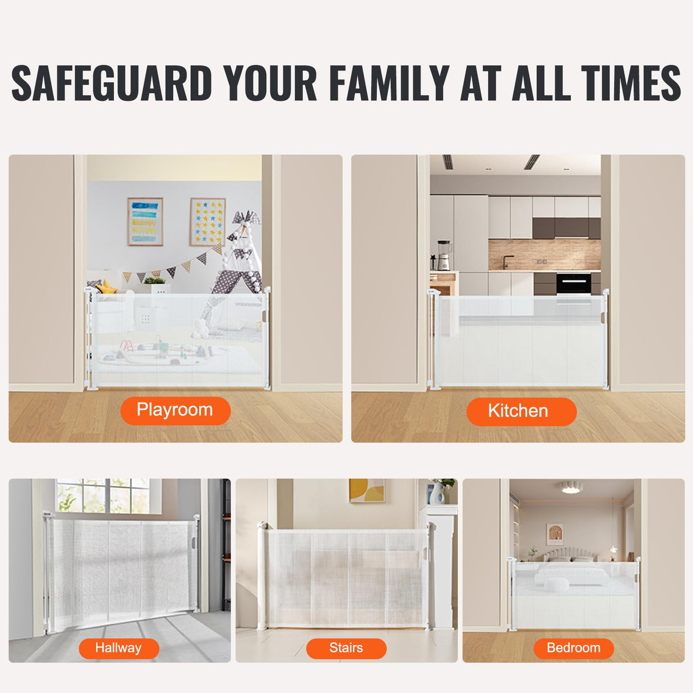 Q: Where can I use the VEVOR Retractable Baby Gate?A: This versatile gate is suitable for various locations in your home, including doorways, hallways, stairs, kitchens, and playrooms, both indoors and outdoors.
