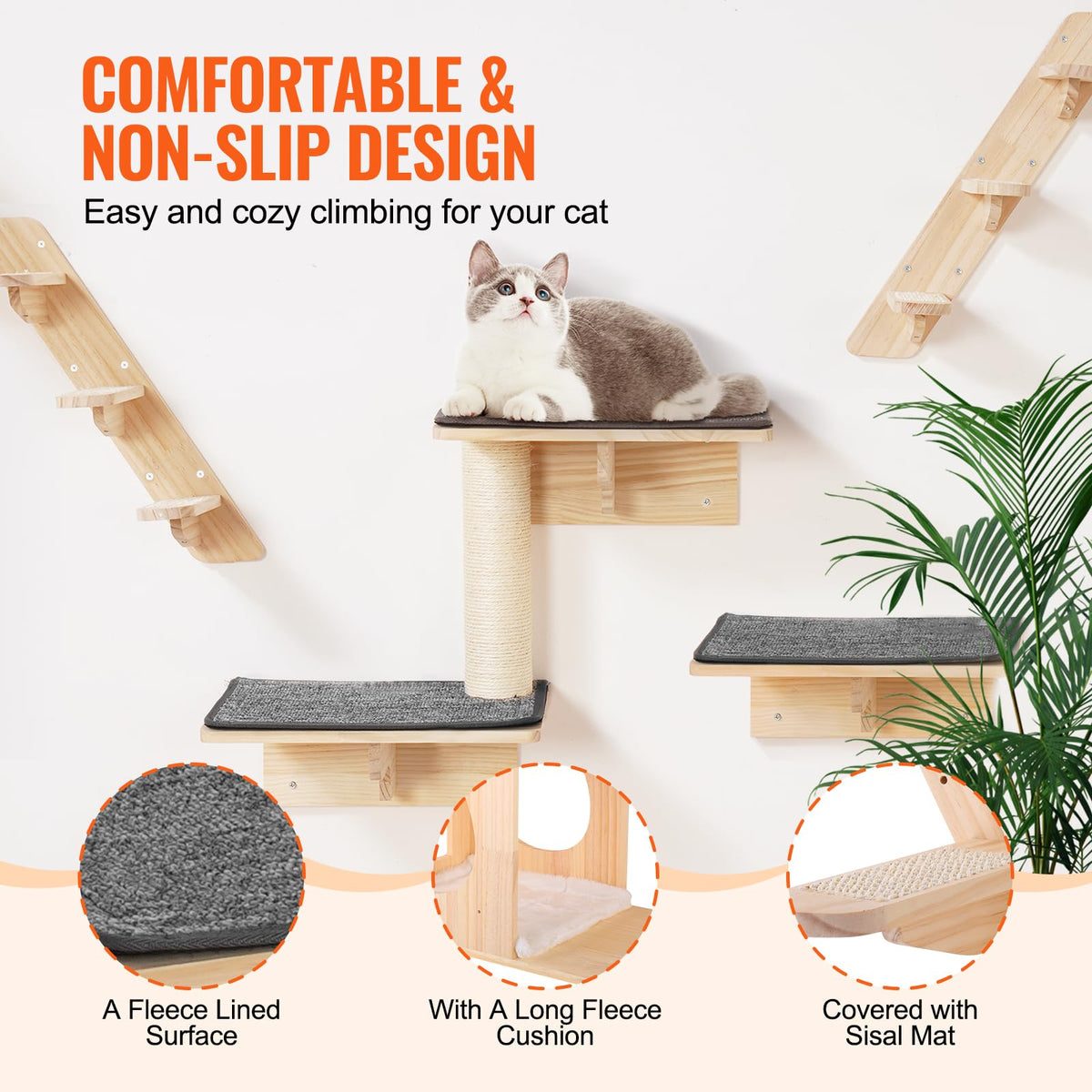 VEVOR Wall Mounted Cat Shelves, Cat Wall Shelves and Perches with Jumping Boards, Cat Beds, Hammocks & Cat Tree, Cat Furniture a