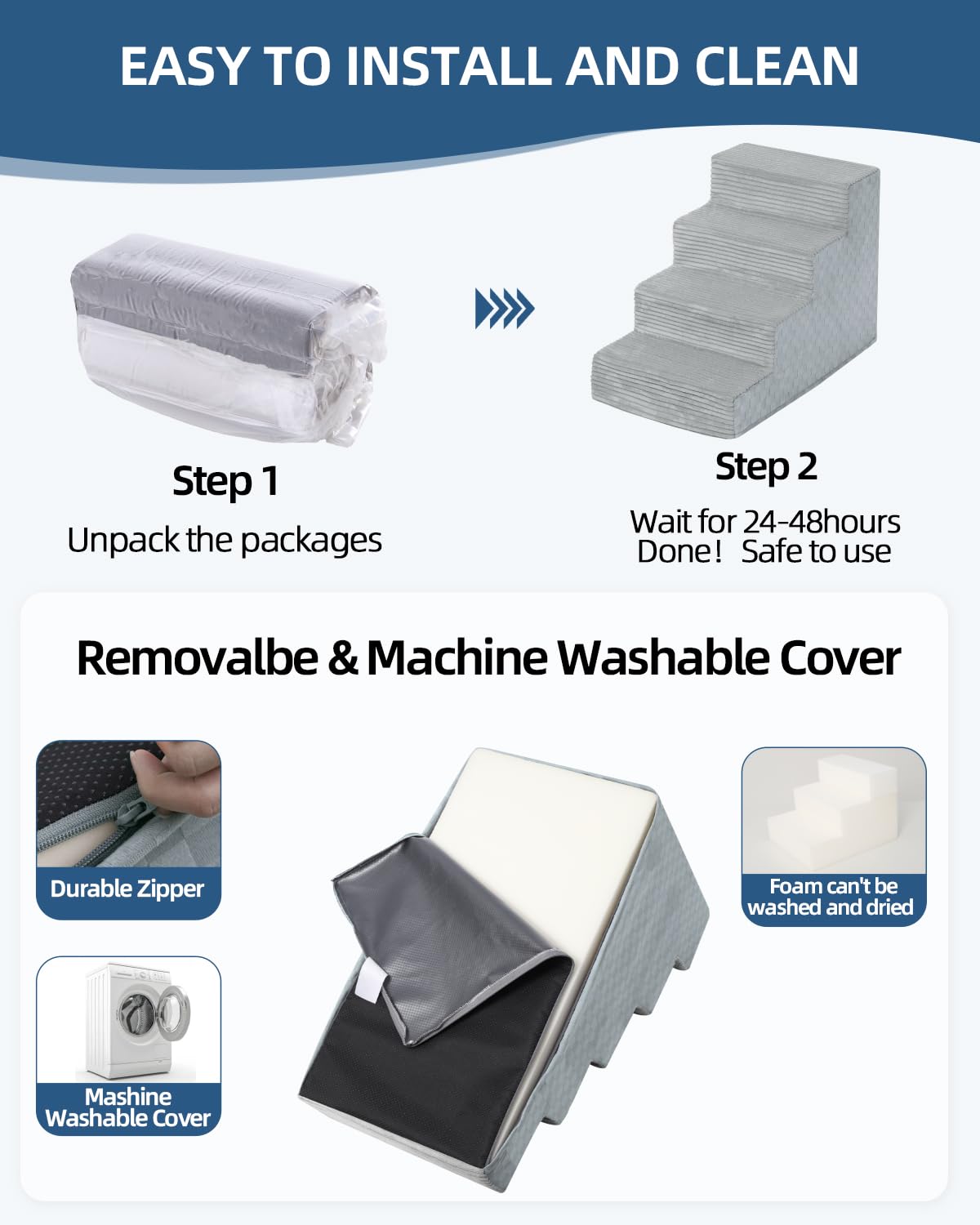 Vfrog Dog Stairs For Small Dogs,13'' H,3-Step Dog Steps For Bed And Couch With High Density Foam,Non-Slip Pet Steps For Doggy An