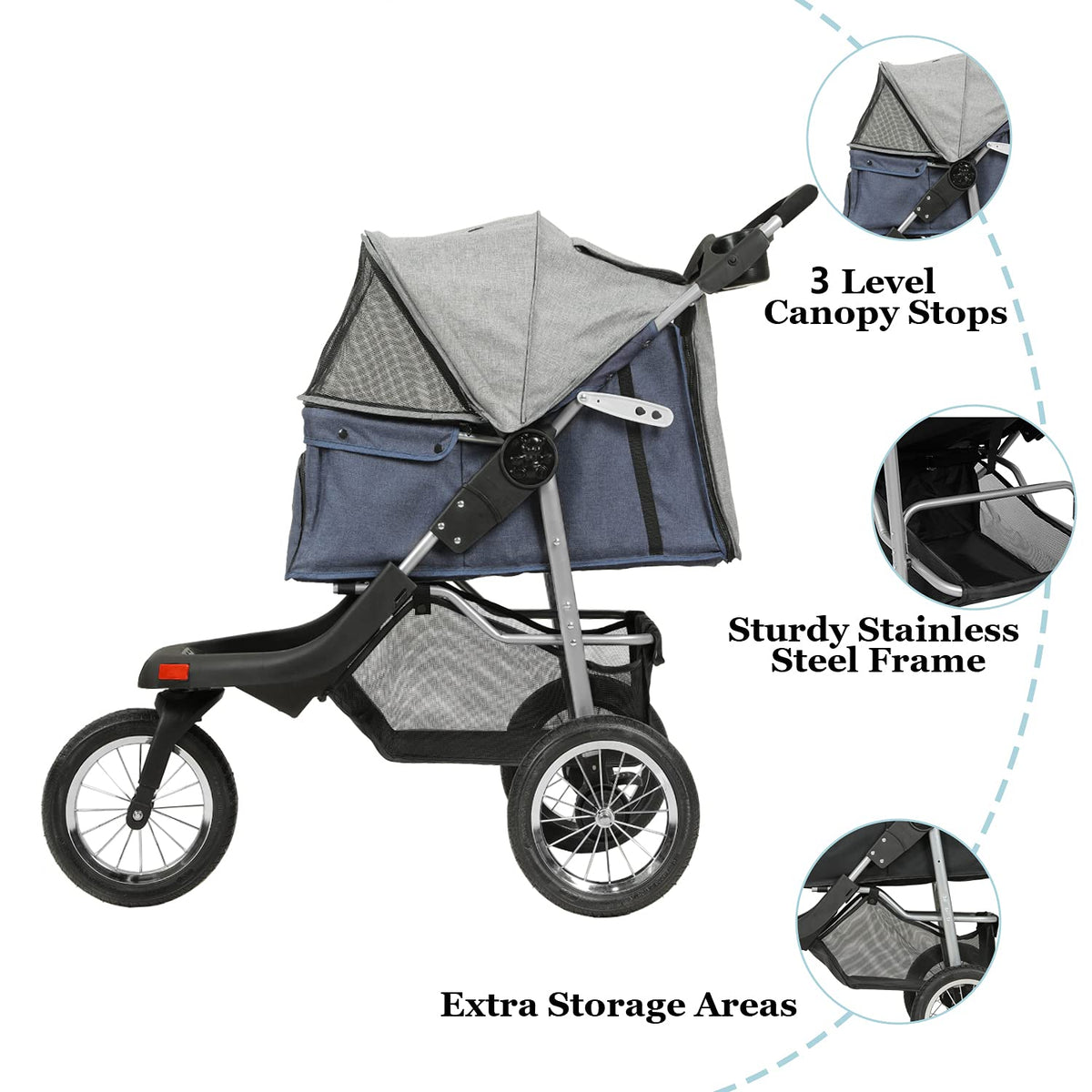 VIAGDO Premium Heavy Duty Dog Stroller for Small Medium Dogs & Cats, 3-Wheel Pet Strollers, Foldable Cat Stroller with Suspensio