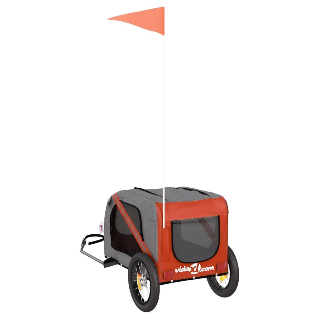 vidaXL Pet Bike Trailer for Small Dogs - Oxford Fabric/Iron Frame, Sturdy Cycle Pet Carrier with Cover, Airy Windows, Easy Entry, Reflectors - Orange/Gray, 48.8x20.9x20.9 Inches